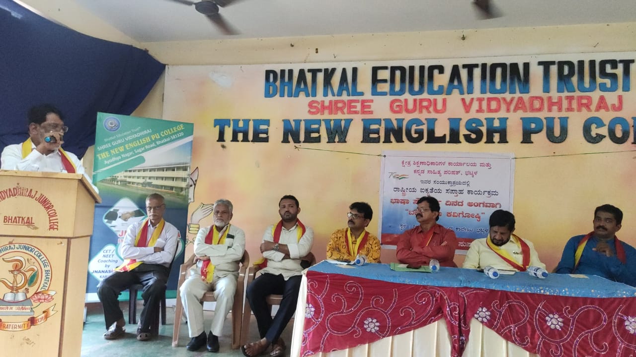 ಭಟ್ಕಳ: ರಾಷ್ಟ್ರೀಯ ಏಕತಾ ಸಪ್ತಾಹ ಭಾಷಾ ಸೌಹಾರ್ದತಾ ದಿನದ ಅಂಗವಾಗಿ ತಾಲೂಕಿನ ಕ್ಷೇತ್ರ ಶಿಕ್ಷಣಾಧಿಕಾರಿಗಳ ಕಾರ್ಯಾಲಯ ಮತ್ತು ಕನ್ನಡ ಸಾಹಿತ್ಯ ಪರಿಷತ್ ಸಹಯೋಗದಲ್ಲಿ ಬಹುಭಾಷಾ ಕವಿಗೋಷ್ಠಿ ಇಲ್ಲಿನ ನ್ಯೂ ಇಂಗ್ಲೀಷ ಪ.ಪೂ.ಕಾಲೇಜಿನ ಸಭಾಂಗಣದಲ್ಲಿ ಬುಧವಾರ ನಡೆಯಿತು.