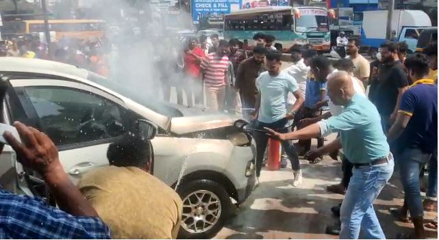 ಮಂಗಳೂರು, ನ.26: ನಗರದ ಬಲ್ಮಠ ಜಂಕ್ಷನ್ ಬಳಿಯ ರಸ್ತೆ ಬದಿ ನಿಲ್ಲಿಸಲಾಗಿದ್ದ ಕಾರಿನಲ್ಲಿ ಅಗ್ನಿ ಅನಾಹುತ ಸಂಭವಿಸಿದ ಘಟನೆ ಶನಿವಾರ ಮಧ್ಯಾಹ್ನ ನಡೆದಿದೆ.