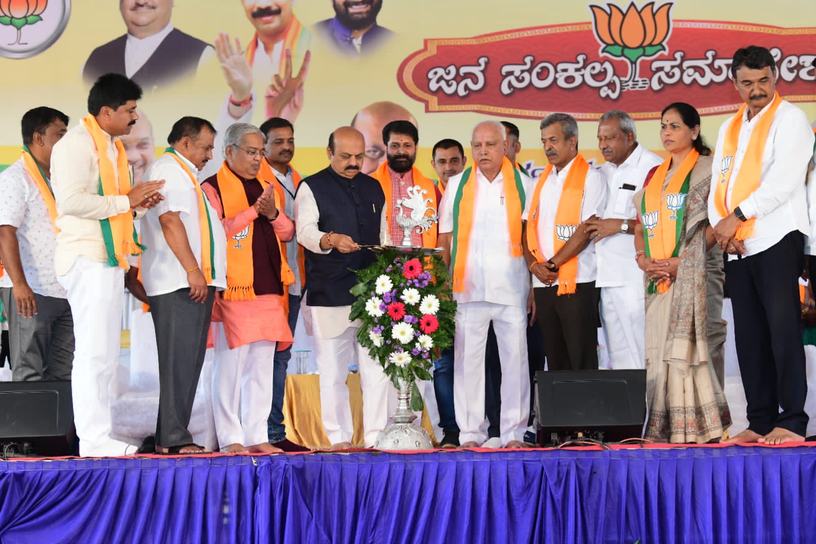 ಮಾಜಿ ಮುಖ್ಯಮಂತ್ರಿ, ಸಂಸದೀಯ ಸಲಹ ಮಂಡಳಿ ಸದಸ್ಯ ಬಿ.ಎಸ್.ಯಡಿಯೂರಪ್ಪ ಮಾತನಾಡಿ, ಕಾಂಗ್ರೆಸ್ ಪಕ್ಷ ದೇಶದಲ್ಲಿ ಅಸ್ತಿತ್ವ ಕಳೆದುಕೊಂಡಿದೆ. ಸದ್ಯ ಎರಡು ರಾಜ್ಯದಲ್ಲಿ ಅಧಿಕಾರದಲ್ಲಿದ್ದು, ಮುಂಬರುವ ಚುನಾವಣೆಯಲ್ಲಿ ಪ್ರಧಾನ ಮಂತ್ರಿ ನರೇಂದ್ರ ಮೋದಿಯವರ ನೇತೃತ್ವದಲ್ಲಿ ಆ ಎರಡು ರಾಜ್ಯಗಳಲ್ಲೂ ಕಾಂಗ್ರೆಸ್ ಅಧಿಕಾರ ಕಳೆದುಕೊಂಡು ಧೂಳಿಪಟವಾಗಲಿದೆ. ಕಾಂಗ್ರೆಸ್ ಪಕ್ಷಕ್ಕೆ ಭವಿಷ್ಯವಿಲ್ಲ, 63ವರ್ಷಗಳ ಕಾಲ ಅಧಿಕಾರ ನಡೆಸಿದ ಕಾಂಗ್ರೆಸ್‍ನವರು ಭ್ರಷ್ಟಾಚಾರ ನಡೆಸಿದರೇ ವಿನಃ ದೇಶದ ಅಭಿವೃದ್ಧಿ ಮಾಡಿಲ್ಲ. ಸದ್ಯ ಹಣ ಹೆಂಡ, ತೋಳ್ಬಲದಿಂದ ಚುನಾವಣೆ ಗೆಲ್ಲುವ ಭ್ರಮೆಯಲ್ಲಿದ್ದಾರೆ. ಡಿಕೆಶಿ, ಸಿದ್ದು ನಡುವೆ ನಾನೇ ಸಿಎಂ ಎಂಬ ಬಗ್ಗೆ ಚರ್ಚೆ ಆರಂಭವಾಗಿದ್ದು, ಅವರ ಕನಸು ನನಸಾಗಲ್ಲ ಎಂದ ಅವರು, ಸಿದ್ದರಾಮಯ್ಯ ಅವರು ಸುಳ್ಳು ಭರವಸೆಗಳನ್ನು ನೀಡಿ ರೈತರು ಮತ್ತು ಜನರ ದಿಕ್ಕು ತಪ್ಪಿಸುವ ಕೆಲಸ ಮಾಡಿದ್ದು, ಜನರು ಯಾವುದೇ ಕಾರಣಕ್ಕೂ ಅವರನ್ನು ಕ್ಷಮಿಸುವುದಿಲ್ಲ. ರಾಜ್ಯದಲ್ಲಿ ಮುಂಬರುವ ಚುನಾವಣೆಯಲ್ಲಿ ಬಿಜೆಪಿ 140 ಸ್ಥಾನಗಳಲ್ಲಿ ಗೆಲ್ಲುವ ಮೂಲಕ ಮತ್ತೊಮ್ಮೆ ಅಧಿಕಾರ ಹಿಡಿಯಲಿದೆ ಎಂದರು.