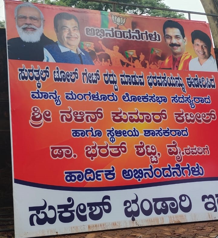ಸುರತ್ಕಲ್ ಹೃದಯಭಾಗದಲ್ಲಿರುವ ಸ್ಮಶಾನದ ಒಳಭಾಗದಲ್ಲಿ ಹಲವು ಬ್ಯಾನರ್ಗಳು ಪತ್ತೆಯಾಗಿದ್ದು, "ಸುರತ್ಕಲ್ ಟೋಲ್ಗೇಟ್ ರದ್ದು ಮಾಡುವ ಭರವಸೆಯನ್ನು ಈಡೇರಿಸಿದ ಮಾನ್ಯ ಮಂಗಳೂರು ಲೋಕಸಭಾ ಸದಸ್ಯರಾದ ಶ್ರೀ ನಳಿನ್ ಕುಮಾರ್ ಕಟೀಲ್ ಹಾಗೂ ಸ್ಥಳೀಯ ಶಾಸಕರಾದ ಡಾ. ಭರತ್ ಶೆಟ್ಟಿ ವೈ. ರವರಿಗೆ ಹಾರ್ದಿಕ ಅಭಿನಂದನೆಗಳು" ಎಂದು ಬ್ಯಾನರ್ ಗಳಲ್ಲಿ ಮುದ್ರಿಸಲಾಗಿದೆ.