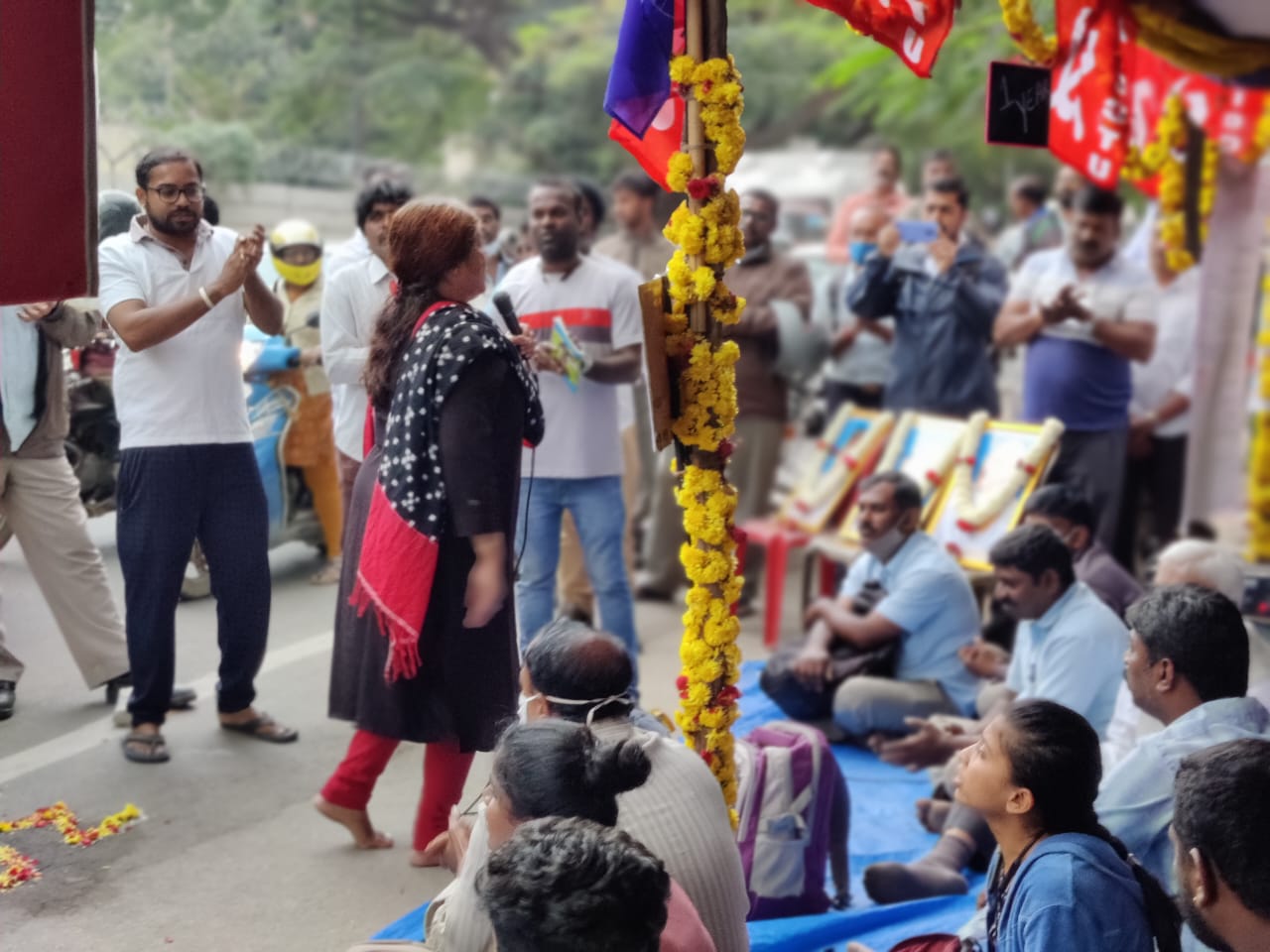 ಬೆಂಗಳೂರು, ಡಿ. 1: ನಗರದಲ್ಲಿರುವ ಕೇಂದ್ರ ಸರಕಾರ ಒಡೆತನದ ಐಟಿಐ ಕಾರ್ಖಾನೆಯು 2021ರ ಡಿ.1ರಂದು 80 ಮಂದಿ ಕಾರ್ಮಿಕರನ್ನು ಏಕಕಾಲದಲ್ಲಿ ವಜಾ ಮಾಡಿದ್ದು, ಕೆಲಸಕ್ಕೆ ಸೇರಿಸಿಕೊಳ್ಳುವಂತೆ ಒಂದು ವರ್ಷದಿಂದ ವಜಾಗೊಂಡ ಕಾರ್ಮಿಕರು ಕಾರ್ಖಾನೆಯ ಮುಂಭಾಗ ಪ್ರತಿಭಟನೆಯನ್ನು ನಡೆಸುತ್ತಿದ್ದೇವೆ. ಆದರೆ ಸರಕಾರ ಯಾವುದೇ ಕ್ರಮವಹಿಸಿಲ್ಲ ಎಂದು ವಜಾಗೊಂಡ ಕಾರ್ಮಿಕರು ತಿಳಿಸಿದ್ದಾರೆ.