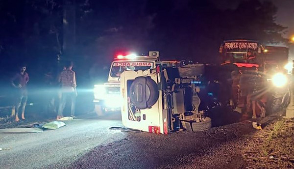 ಬೆಳ್ತಂಗಡಿ ಸೇತುವೆ ಬಳಿ ಪಲ್ಟಿಯಾದ ಆಂಬುಲೆನ್ಸ್: ಓರ್ವ ವೈದ್ಯ ಸೇರಿ ಮೂವರಿಗೆ ಗಾಯ