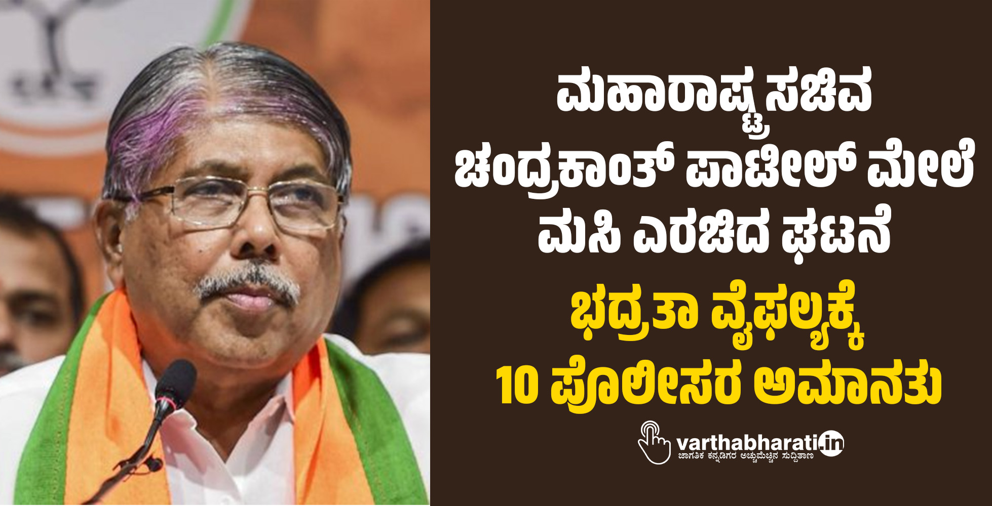 ಮಹಾರಾಷ್ಟ್ರ ಸಚಿವ ಚಂದ್ರಕಾಂತ್ ಪಾಟೀಲ್ ಮೇಲೆ ಮಸಿ ಎರಚಿದ ಘಟನೆ: ಭದ್ರತಾ ವೈಫಲ್ಯಕ್ಕೆ  10 ಪೊಲೀಸರ ಅಮಾನತು