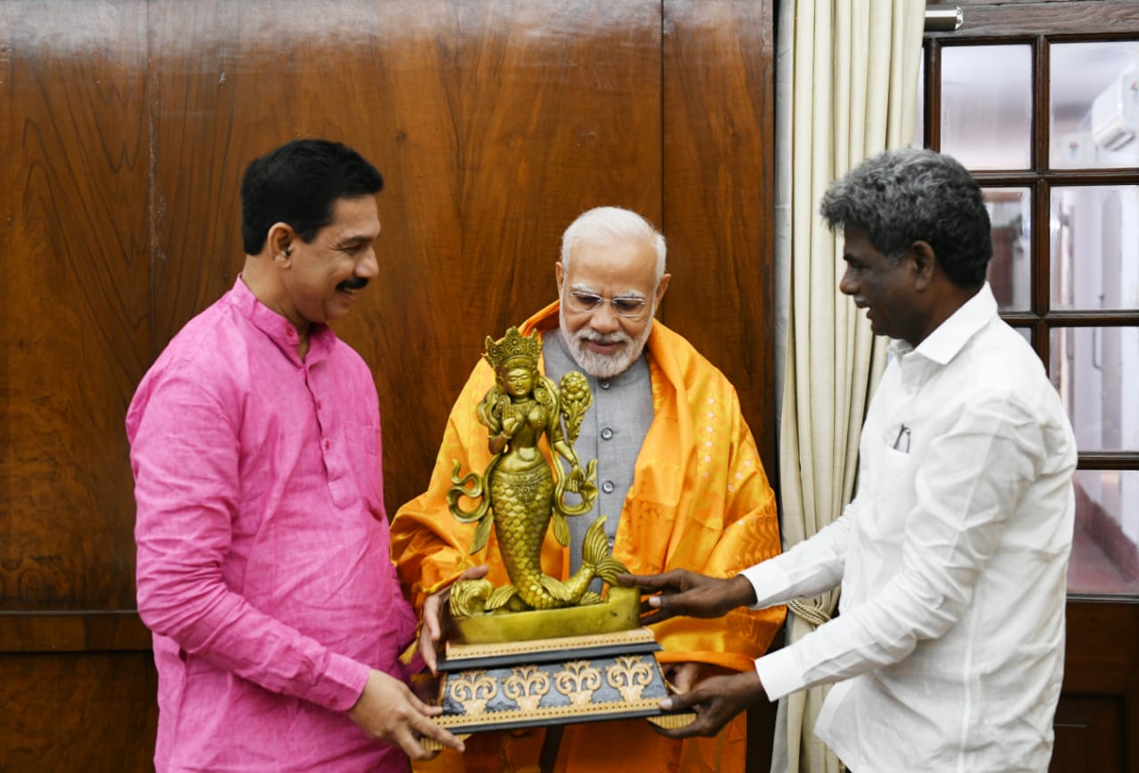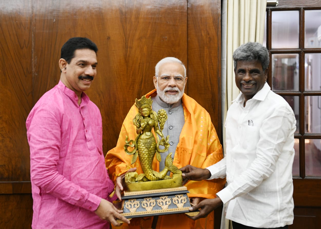 ಬುಧವಾರ ಹೊಸದಿಲ್ಲಿಯ ಸಂಸತ್ ಭವನದಲ್ಲಿ ಪ್ರಧಾನಿ ಮೋದಿ ಅವರನ್ನು ಬಿಜೆಪಿ ರಾಜ್ಯಾಧ್ಯಕ್ಷ ನಳೀನ್ ಕುಮಾರ್ ಕಟೀಲ್ ಅವರೊಂದಿಗೆ ಖುದ್ದು ಭೇಟಿಯಾದ ಸಚಿವ ಕೋಟ ಶ್ರೀನಿವಾಸ ಪೂಜಾರಿ ಅವರು, ಪ್ರಧಾನಿ ಮೋದಿಯವರಿಗೆ ‘ಮತ್ಸ್ಯ ದೇವತೆ ಸ್ಮರಣಿಕೆ’ ನೀಡಿ ಗೌರವಿಸಿದರು.