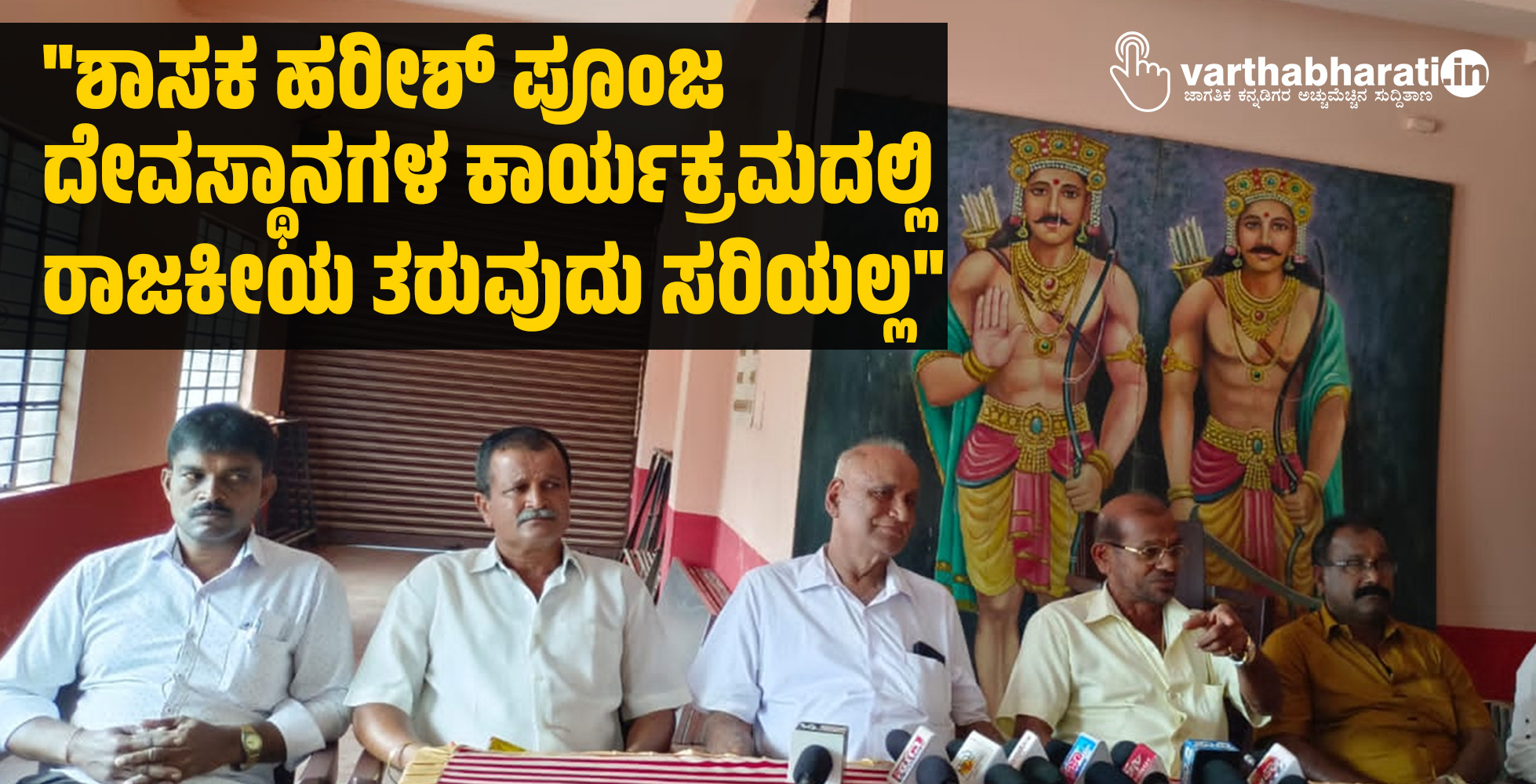 "ಶಾಸಕ ಹರೀಶ್ ಪೂಂಜ ದೇವಸ್ಥಾನಗಳ ಕಾರ್ಯಕ್ರಮದಲ್ಲಿ ರಾಜಕೀಯ ತರುವುದು ಸರಿಯಲ್ಲ"