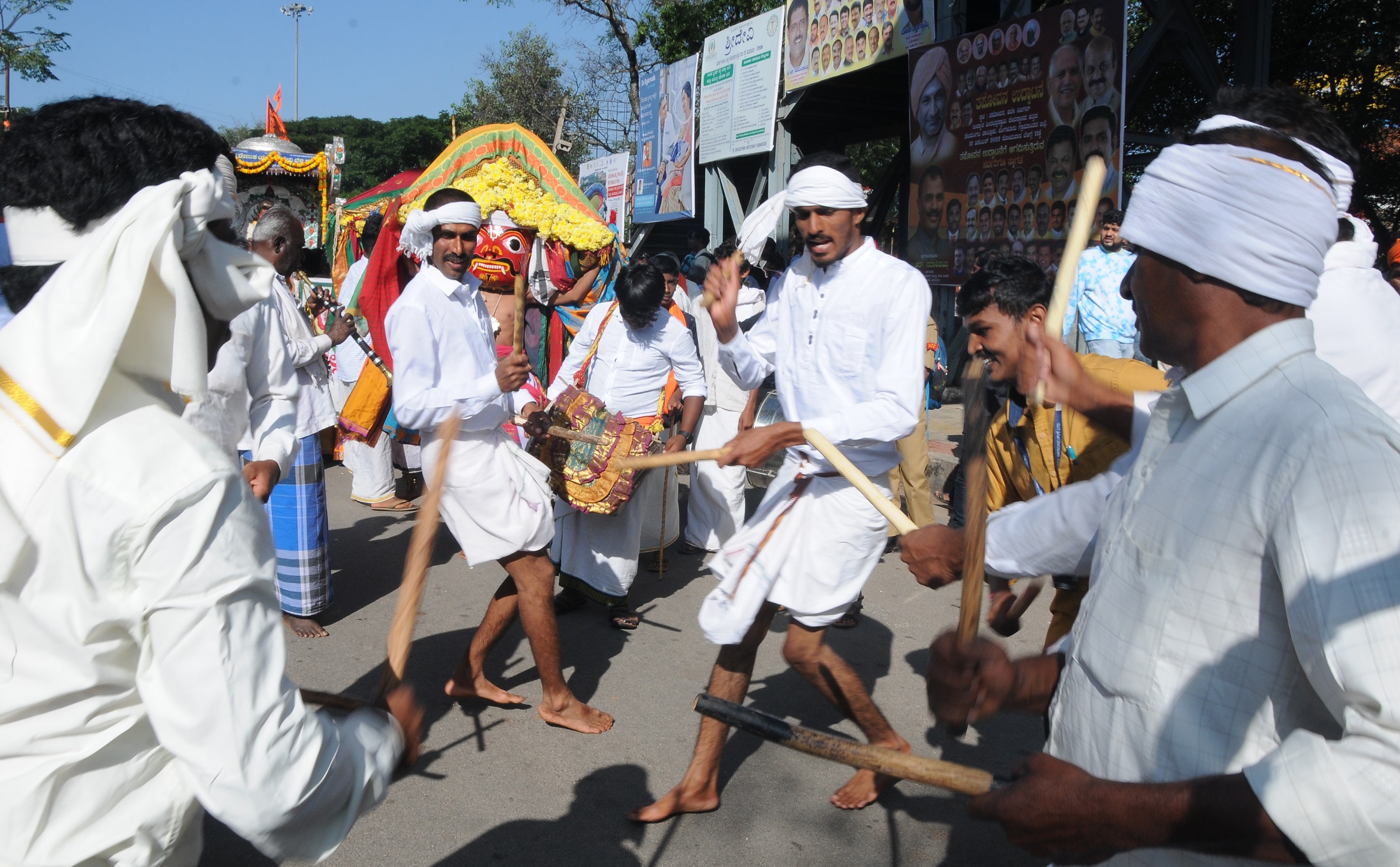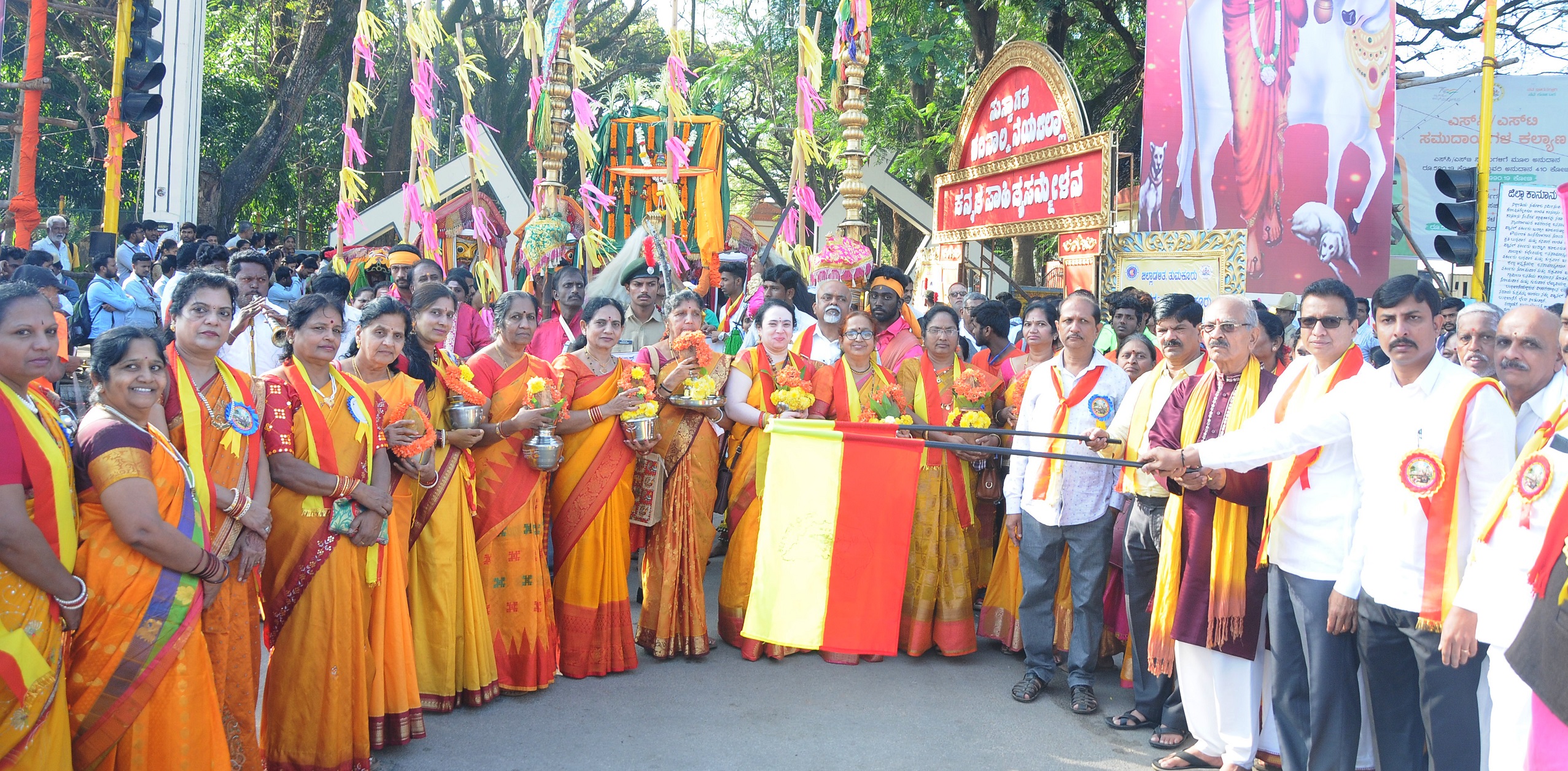 ಕಾರ್ಯಕ್ರಮಕ್ಕೂ ಮುನ್ನ ನಗರದ ಟೌನ್ಹಾಲ್ ವೃತ್ತದಿಂದ ಗಾಜಿನಮನೆಯವರೆಗೂ ಸಮ್ಮೇಳಾಧ್ಯಕ್ಷರಾದ ಪ್ರೊ.ಎಂ.ವಿ. ನಾಗರಾಜರಾವ್ ಅವರನ್ನು ವಿವಿಧ ಜನಪದ ಕಲಾತಂಡಗಳ ಪ್ರದರ್ಶನದ ಮೂಲಕ ಮೆರವಣಿಗೆ ನಡೆಸಲಾಯಿತು.
