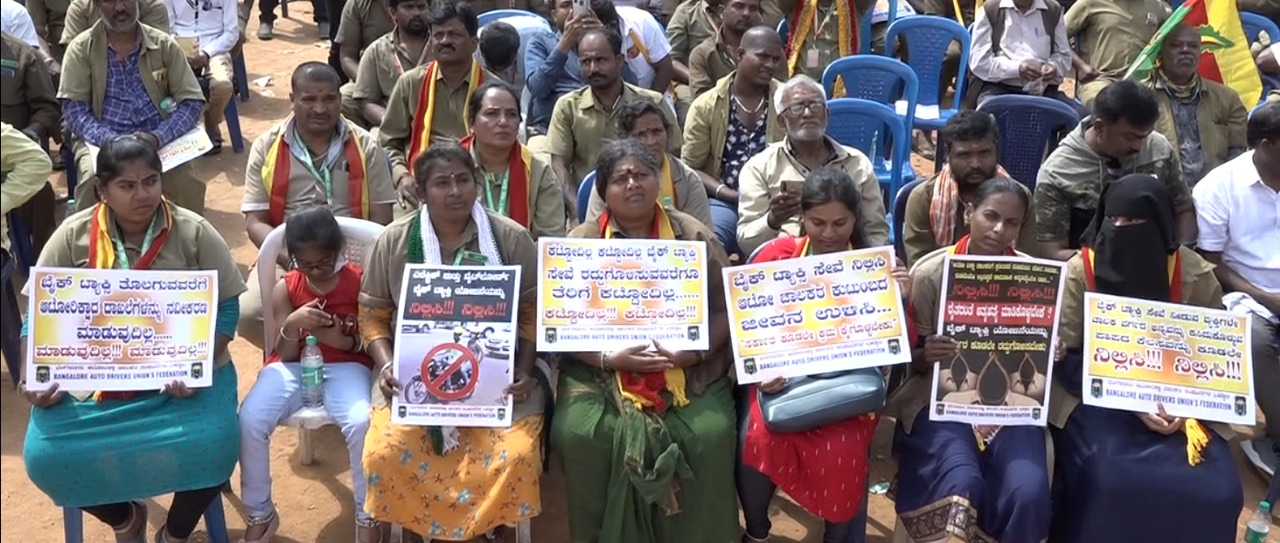 ಇ-ಬೈಕ್ ಟ್ಯಾಕ್ಸಿ, ವೈಟ್ ಬೋರ್ಡ್ ಟ್ಯಾಕ್ಸಿಗಳ ಅನುಮತಿ ಹಿಂಪಡೆಯಲು ಒತ್ತಾಯಿಸಿ ಆಟೋ ಚಾಲಕರ ಮುಷ್ಕರ