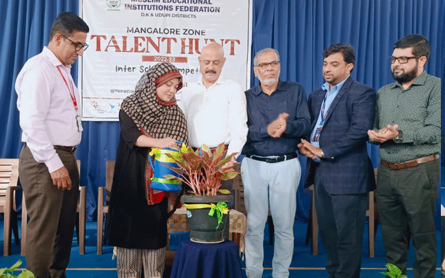 ಮಂಗಳೂರು: ಮುಸ್ಲಿಂ ಶಿಕ್ಷಣ ಸಂಸ್ಥೆಗಳ ಒಕ್ಕೂಟ ದ.ಕ ಹಾಗೂ ಉಡುಪಿ ಜಿಲ್ಲೆ (MEIF ) ವತಿಯಿಂದ 5 ನೇ ಹಾಗೂ ಝೋನ್ ಮಟ್ಟದ ಕೊನೆಯ ಪ್ರತಿಭಾ ಸ್ಪರ್ಧೆ ಮಂಗಳೂರು ಝೋನಲ್ 'Talent Hunt -2022 -23' ಸ್ಪರ್ಧೆ ಶನಿವಾರ ಜೆಪ್ಪಿನಮೊಗರಿನ ಯೆನೆಪೋಯ ವಿದ್ಯಾ ಸಂಸ್ಥೆಯಲ್ಲಿ ನಡೆಯಿತು.