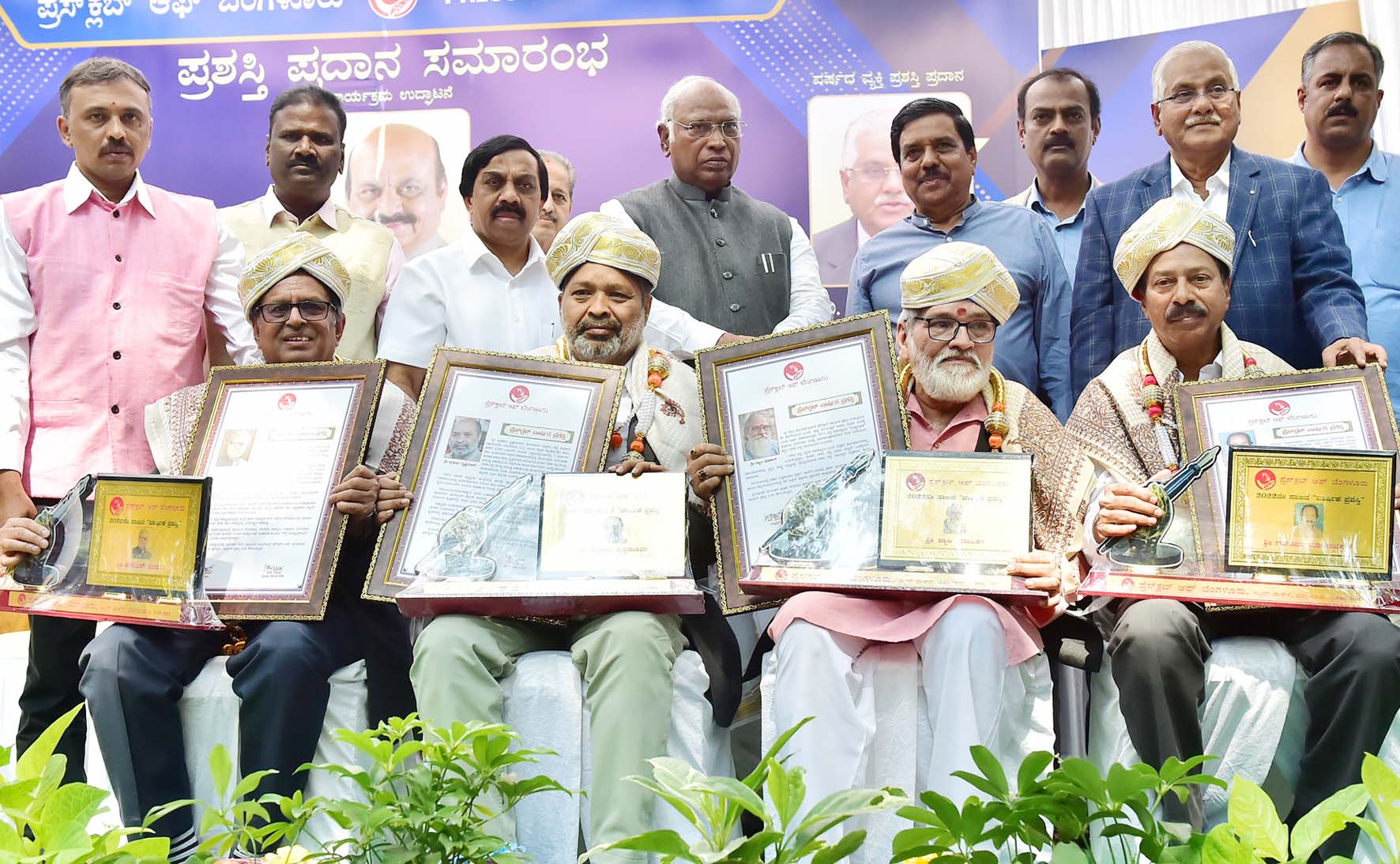 ಕಾರ್ಯಕ್ರಮದಲ್ಲಿ ಎಐಸಿಸಿ ಅಧ್ಯಕ್ಷ ಮಲ್ಲಿಕಾರ್ಜುನ ಖರ್ಗೆ ಹಾಗೂ ಸುಪ್ರೀಂಕೋರ್ಟ್ನ ನಿವೃತ್ತ ನ್ಯಾ. ಗೋಪಾಲಗೌಡ ಅವರಿಗೆ ಪ್ರೆಸ್ಕ್ಲಬ್ನ ವರ್ಷದ ವ್ಯಕ್ತಿ ಪ್ರಶಸ್ತಿಯನ್ನು, ಸಹಕಾರ ಸಚಿವ ಎಸ್.ಟಿ. ಸೋಮಶೇಖರ್ ಹಾಗೂ ಸಚಿವ ಮುರುಗೇಶ್ ನಿರಾಣಿ ಅವರಿಗೆ ವಿಶೇಷ ಪ್ರಶಸ್ತಿಯನ್ನು ನೀಡಲಾಯಿತು. ಮಾಧ್ಯಮದ ಕ್ಷೇತ್ರದಲ್ಲಿ ಕಾರ್ಯನಿರ್ವಹಿಸಿದ 32 ಸಾಧಕರಿಗೆ ಪ್ರೆಸ್ ಕ್ಲಬ್ ವಾರ್ಷಿಕ ಪ್ರಶಸ್ತಿ ನೀಡಿ ಗೌರವಿಸಲಾಯಿತು. ಕಾರ್ಯಕ್ರಮದಲ್ಲಿ ಪ್ರೆಸ್ಕ್ಲಬ್ನ ಅಧ್ಯಕ್ಷ ಶ್ರೀಧರ್, ಪ್ರಧಾನ ಕಾರ್ಯದರ್ಶಿ ಮಲ್ಲಪ್ಪ ಮತ್ತಿತರರು ಉಪಸ್ಥಿತರಿದ್ದರು.