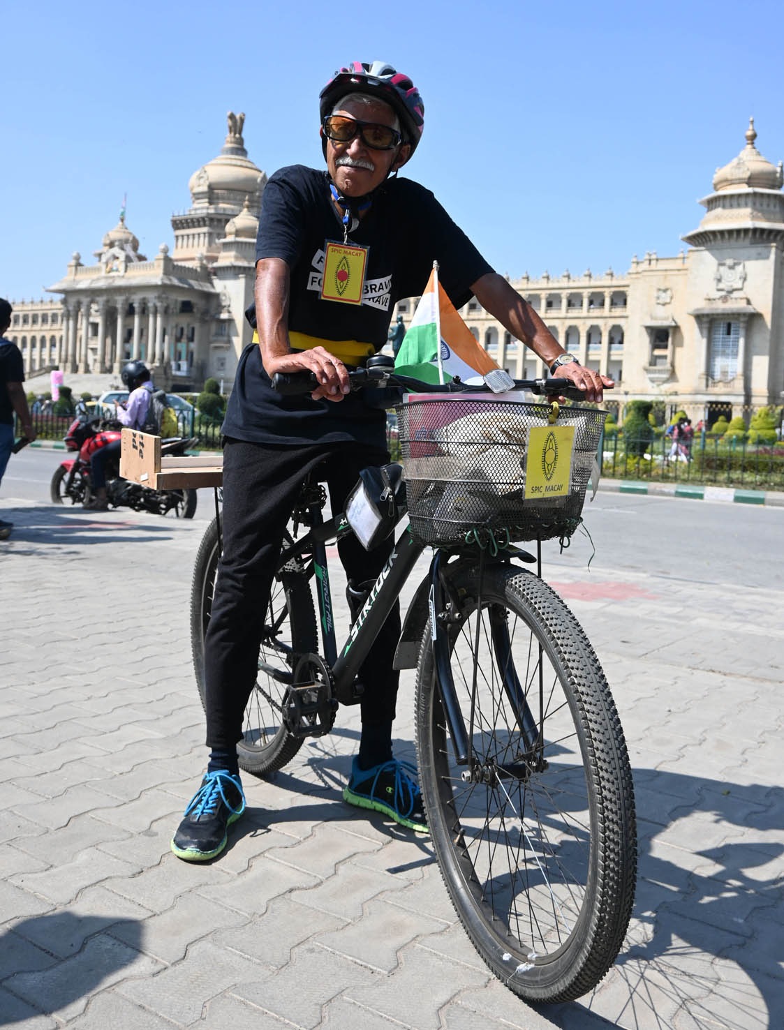 73 ವರ್ಷದ ಡಾ.ಕಿರಣ್ ಸೇಥ್ ಅವರು, ಕಳೆದ ವರ್ಷ ಆ.15ರಂದು ಶ್ರೀನಗರದಿಂದ ಸೈಕಲ್ ಯಾತ್ರೆ ಪ್ರಾರಂಭಿಸಿದ್ದು, ಈಗಾಗಲೇ 3000 ಕಿ.ಮೀ ಸಂಚಾರಿಸಿದ್ದಾರೆ. ಜ.2ರಿಂದ 5ರವರೆಗೆ ಬೆಂಗಳೂರಿನಲ್ಲಿ ಇರಲಿದ್ದು, ಜನತೆಗೆ ತಮ್ಮ ಸಂದೇಶವನ್ನು ಸಾರಲಿದ್ದಾರೆ ಎಂದು ಸ್ಪಿಕ್ಮ್ಯಾಕೆ ಸಲಹೆಗಾರ ವಿದ್ಯಾ ಹರೀಶ್ ತಿಳಿಸಿದರು.