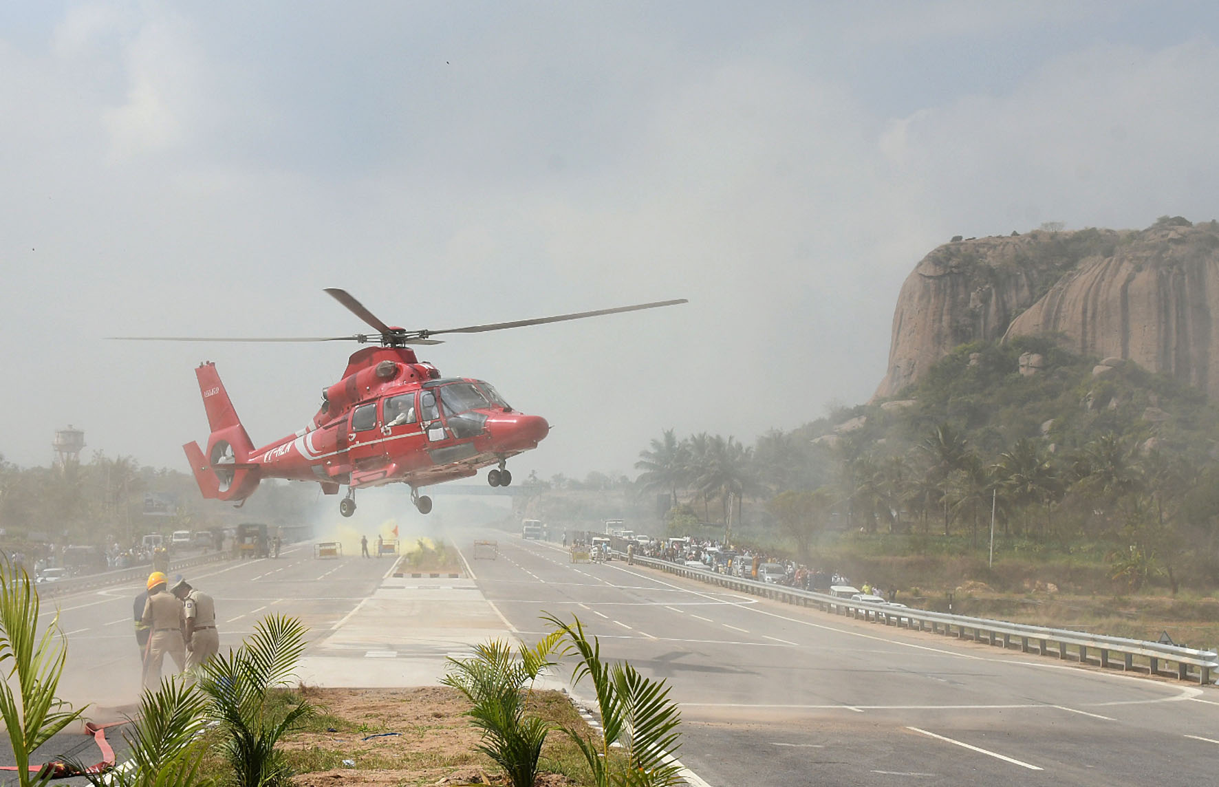 ಬೆಂಗಳೂರು - ಮೈಸೂರು ಹೆದ್ದಾರಿಯಲ್ಲೇ ಲ್ಯಾಂಡ್ ಆದ ನಿತಿನ್ ಗಡ್ಕರಿ ಹೆಲಿಕಾಪ್ಟರ್