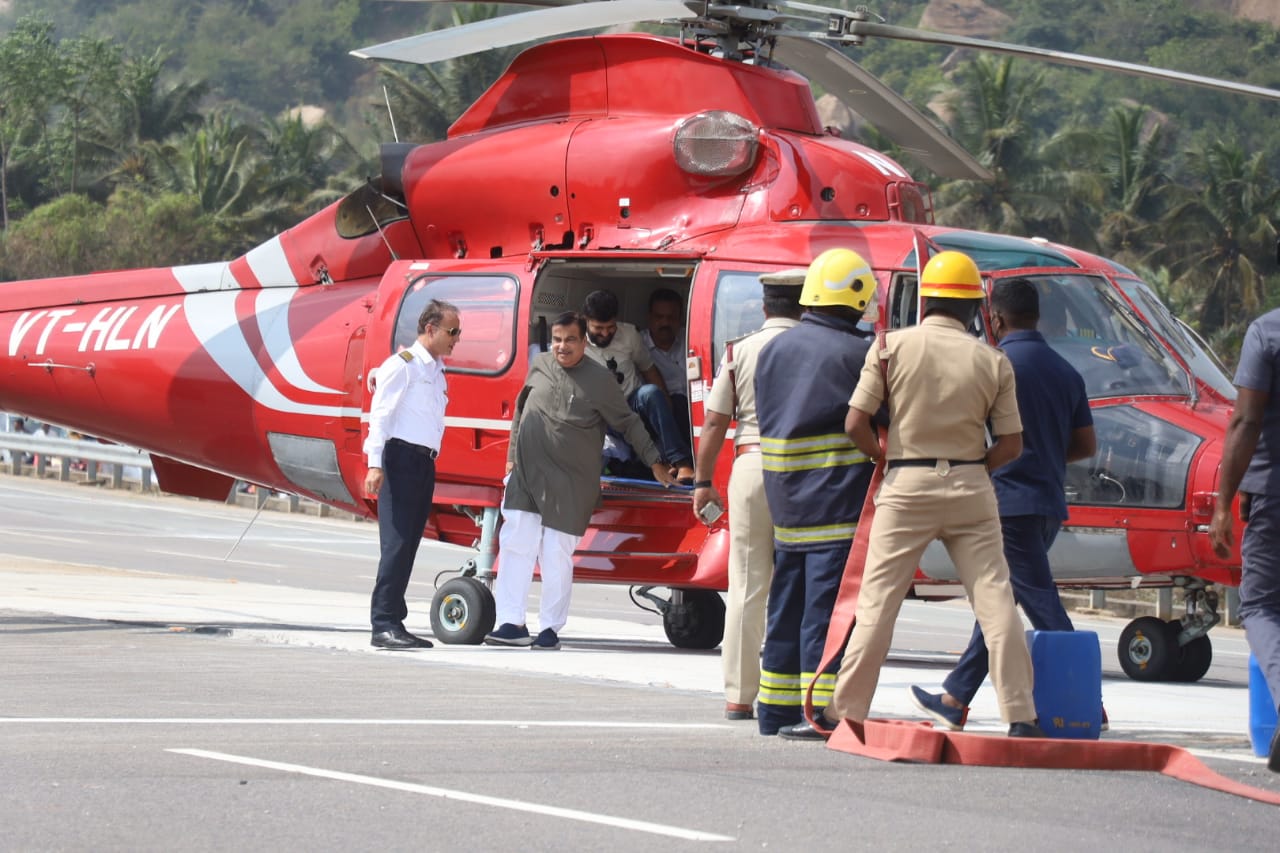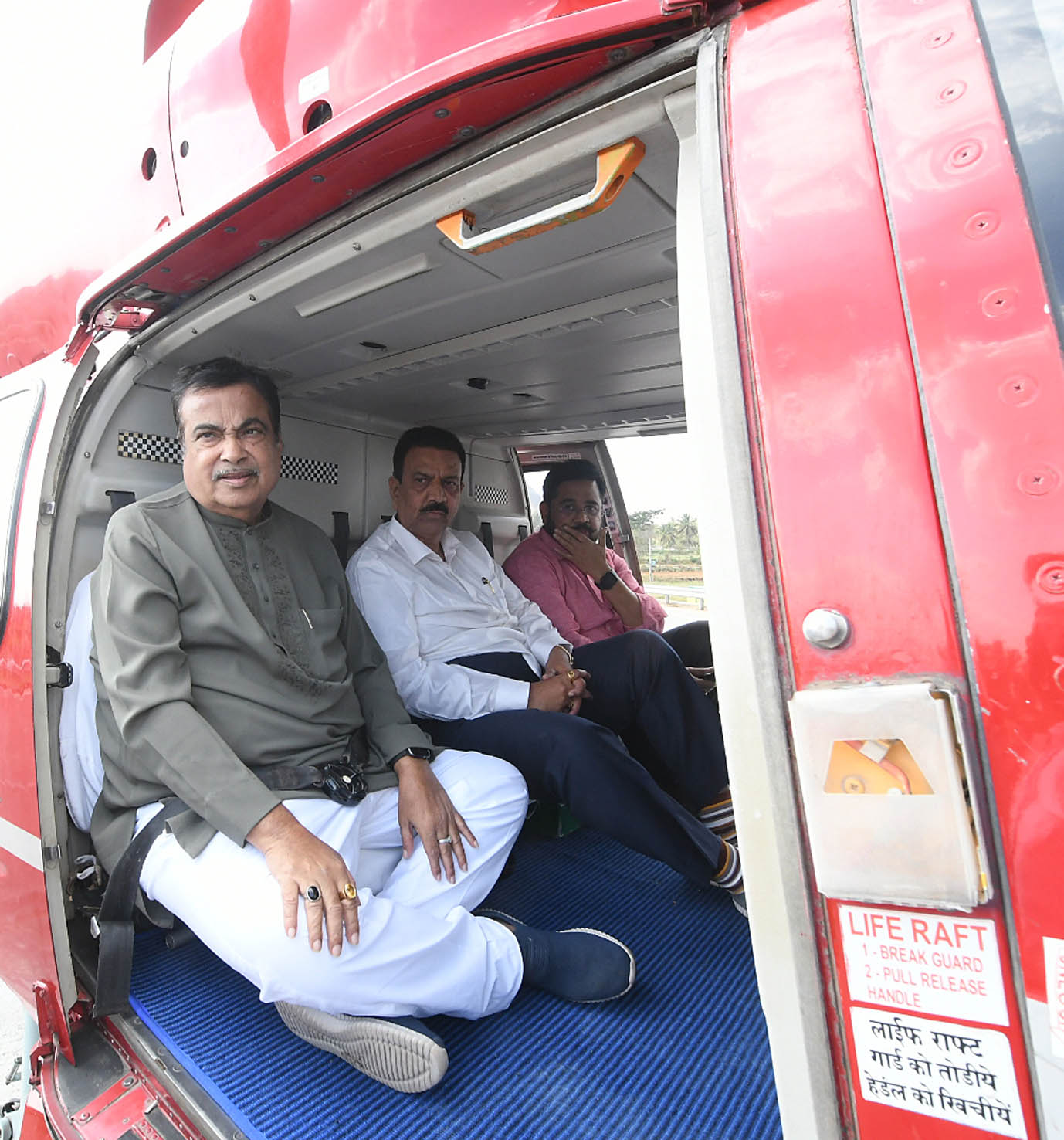 ಈ ಸಂದರ್ಭದಲ್ಲಿ ನಿತಿನ್ ಗಡ್ಕರಿ ಅವರ ಜೊತೆ ಲೋಕೋಪಯೋಗಿ ಸಚಿವ ಸಿ. ಸಿ ಪಾಟೀಲ್, ಸಂಸದ ಪ್ರತಾಪ್ ಸಿಂಹ ಕೂಡ ಹೆಲಿಕ್ಯಾಪ್ಟರ್ ನಲ್ಲಿದ್ದರು.