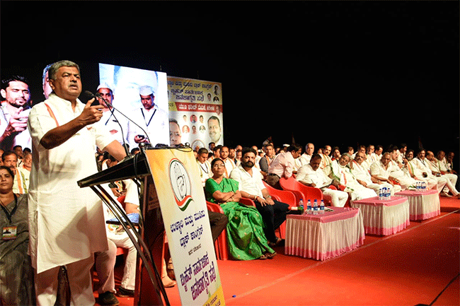 ವಿಧಾನ ಪರಿಷತ್ತಿನ ವಿಪಕ್ಷ ನಾಯಕ ಬಿ.ಕೆ.ಹರಿಪ್ರಸಾದ್ ಮಾತನಾಡಿ, ಈ ರಾಷ್ಟ್ರವನ್ನು ಮಾರುವುದಕ್ಕೆ ಮುಂಚೆ ನಾವೆಲ್ಲರೂ ಎಚ್ಚೆತ್ತುಕೊಳ್ಳಬೇಕಿದೆ. ಬಿಜೆಪಿಯವರ ಕೈಗೆ ಅಧಿಕಾರ ಕೊಟ್ಟರೆ ಮಕ್ಕಳ ಕೈಗೆ ಪೆನ್ ಕೊಡಲ್ಲ, ಬದಲಿಗೆ ಚೂರಿ, ತಲ್ವಾರ್ ಕೊಡ್ತಾರೆ. ಇಂದು ಎಲ್ಲಾ ಕಡೆಯಲ್ಲೂ ಬಿಜೆಪಿ ಕೋಮುದಳ್ಳೂರಿ ಮಾಡಿ ಅಧಿಕಾರ ಮಾಡ್ತಾ ಇರೋದನ್ನ ಕಾಣ್ತಾ ಇದ್ದೇವೆ. ನಮ್ಮ ದೇಶವನ್ನು ಕಾಪಾಡಬೇಕಾದರೆ ಬಿಜೆಪಿ ಸರಕಾರವನ್ನು ಕಿತ್ತೊಗೆದು ಜಾತ್ಯಾತೀತ ಪಕ್ಷ ಕಾಂಗ್ರೆಸ್ ನೇತೃತ್ವದ ಸರಕಾರ ಅಧಿಕಾರಕ್ಕೆ ಬರುವಂತೆ ಮಾಡಬೇಡಕಿದೆ ಎಂದರು.