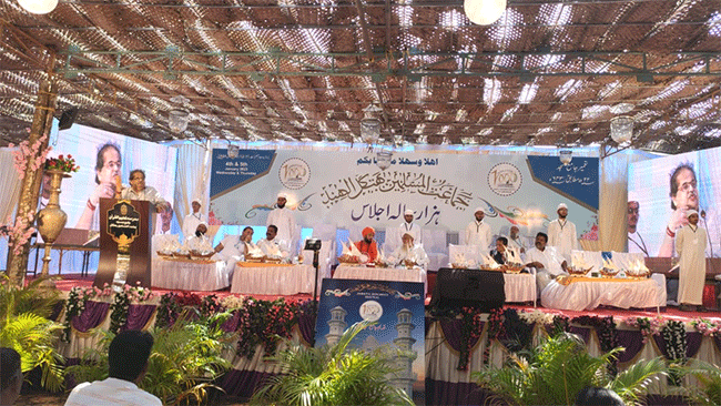 ಇಲ್ಲಿನ ಜಾಮಿಯಾ ಮಸೀದಿ ಬಳಿ ಇರುವ ಮೈದಾನದಲ್ಲಿ ಭಟ್ಕಳದ ಜಮಾಅತುಲ್ ಮುಸ್ಲಿಮೀನ್ ಸಂಸ್ಥೆಯ ಸಹಸ್ರಮಾನೋತ್ಸವ ಸಮಾರಂಭದ ಅಂಗವಾಗಿ ಗುರುವಾರ ನಡೆದ ‘ಭಟ್ಕಳದಲ್ಲಿ ಹಿಂದೂ-ಮುಸ್ಲಿಮ್ ಧರ್ಮ ಸಮನ್ವಯತೆ’ ಎಂಬ ವಿಷಯದ ಕುರಿತು ನಡೆದ ಬೃಹತ್ ಸಮಾವೇಶವನ್ನುದ್ದೇಶಿಸಿ ಅವರು ಮಾತನಾಡಿದರು.