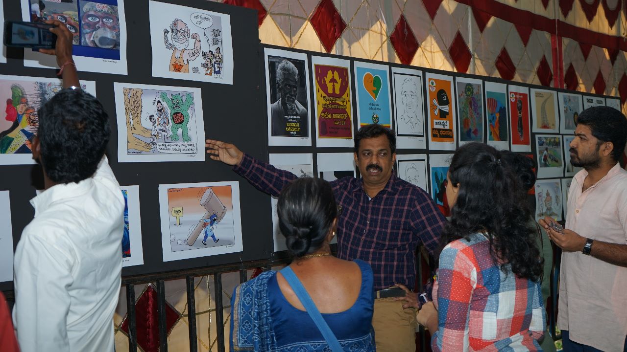 VIDEO - ‘ಜನಸಾಹಿತ್ಯ ಸಮ್ಮೇಳನ’ದಲ್ಲಿ ಗಮನ ಸೆಳೆದ ವ್ಯಂಗ್ಯಚಿತ್ರ, ಪೋಸ್ಟರ್ ಪ್ರದರ್ಶನ