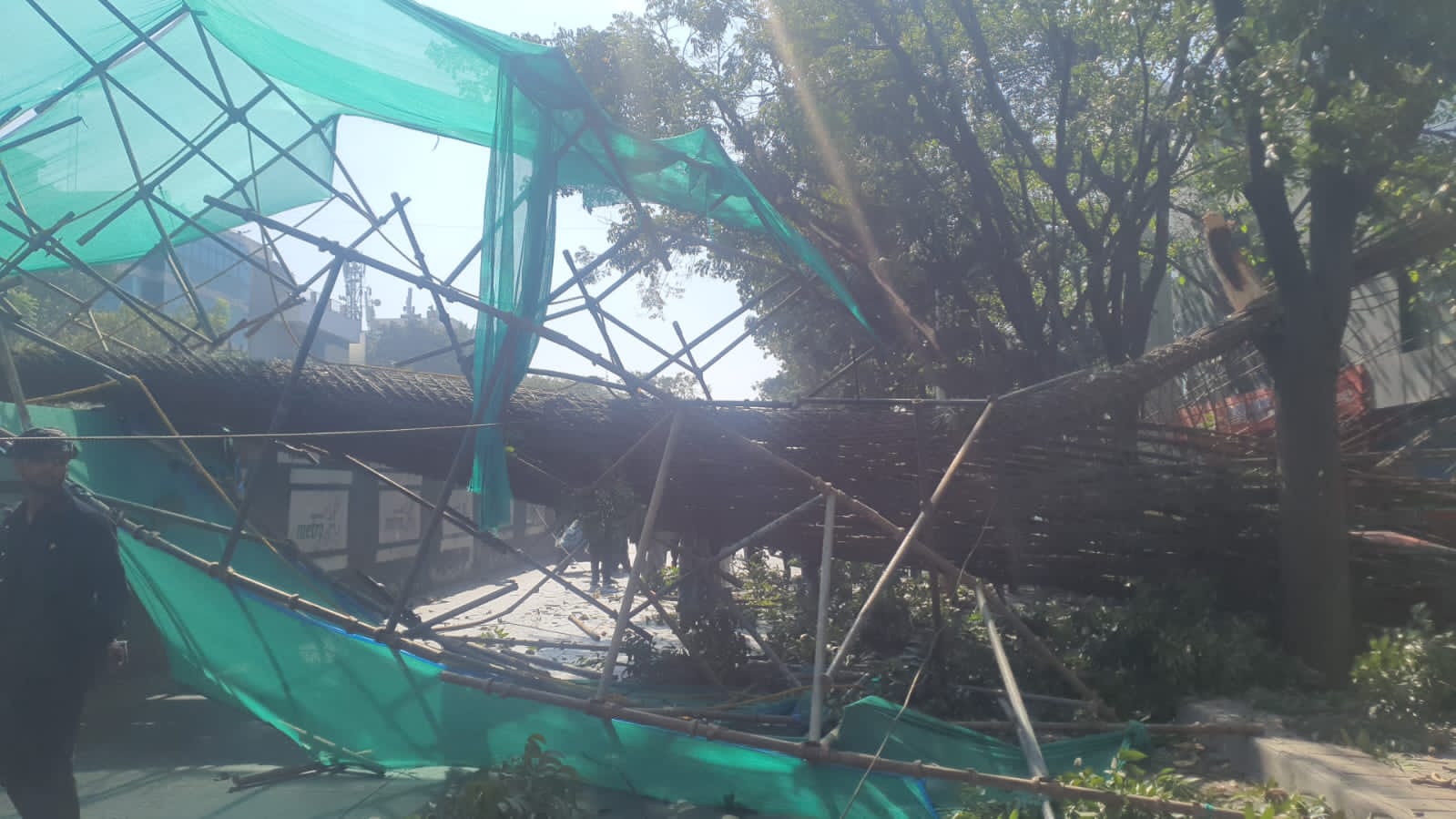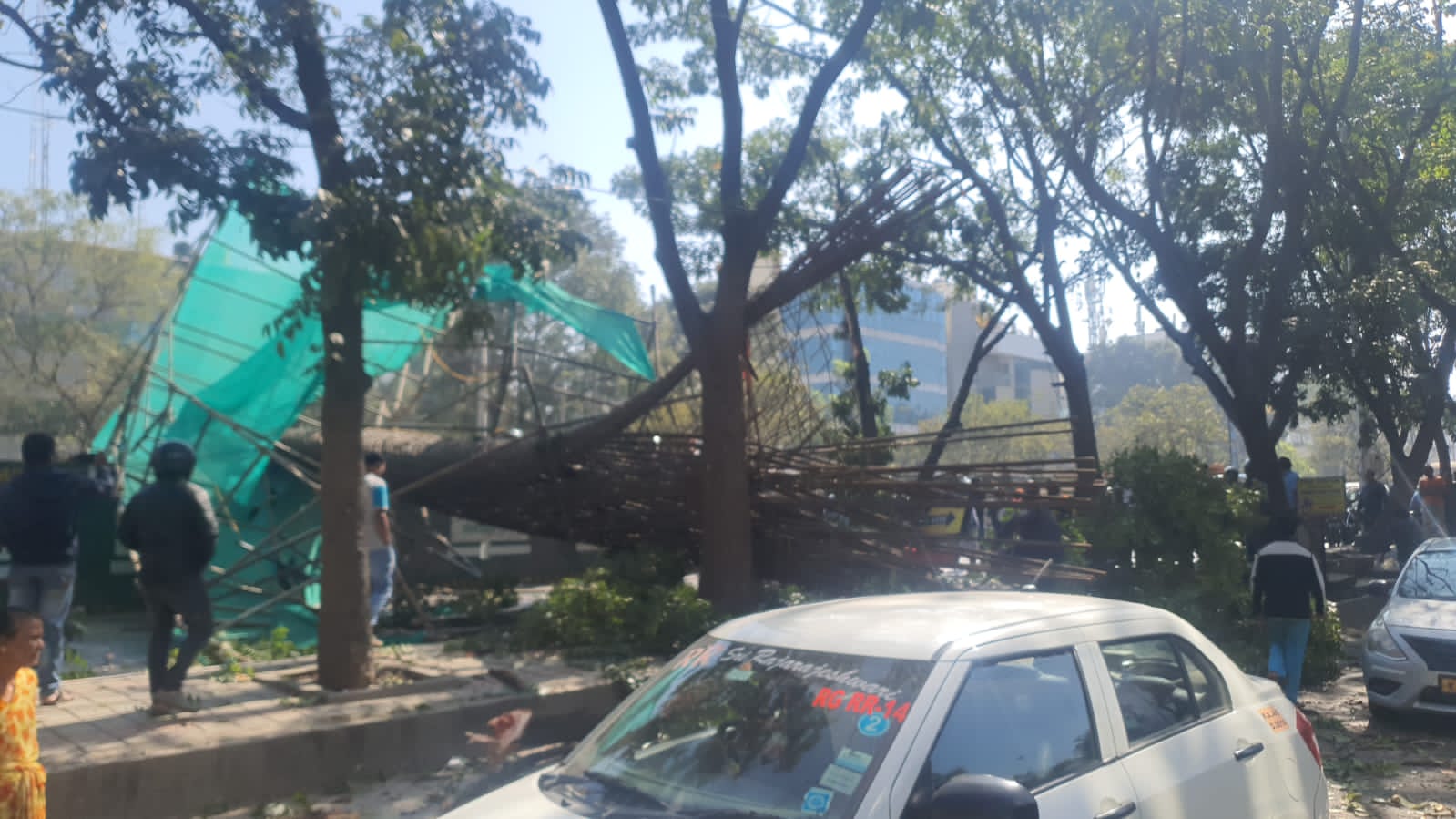 A metro pillar which was under constriction collapsed in Nagavara, Outer Ring Road in #Bengaluru. #BMRCL yet to share more details on the incident. More details are awaited.@the_hindu @THBengaluru pic.twitter.com/mx0gT4zNGs