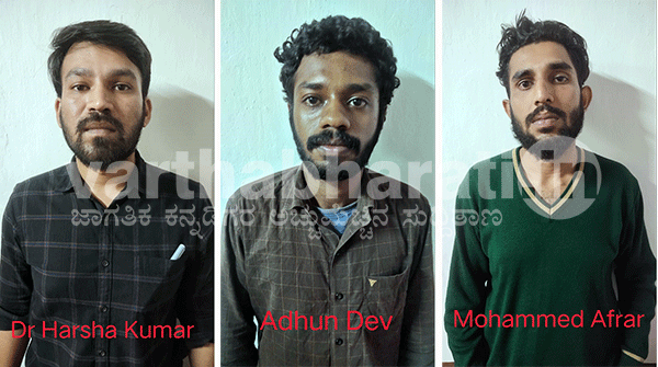 ಪ್ರತಿಷ್ಠಿತ ವೈದ್ಯಕೀಯ ಕಾಲೇಜಿನಲ್ಲಿ ಅಂತಿಮ ವರ್ಷದ Pathology MD ಮಾಡುತ್ತಿರುವ ತುಮಕೂರು ಮೂಲದ ಡಾ.ಹರ್ಷ ಕುಮಾರ್, D Pharm ವಿದ್ಯಾರ್ಥಿ ಕೇರಳದ ಕೊಚ್ಚಿನ್ ಮೂಲದ ಅಧುನ್ ದೇವ್ ಮತ್ತು ಮಂಗಳೂರು ಕಸಬ ಬೆಂಗ್ರೆ ನಿವಾಸಿ, ಹಣ್ಣುಹಂಪಲು ಮಾರಾಟ ಅಂಗಡಿಯಲ್ಲಿ ಕೆಲಸ ಮಾಡುವ ಮುಹಮ್ಮದ್ ಅಫ್ರಾರ್(23) ಬಂಧಿತ ಆರೋಪಿಗಳೆಂದು ಪೊಲೀಸರು ಮಾಹಿತಿ ನೀಡಿದ್ದಾರೆ.