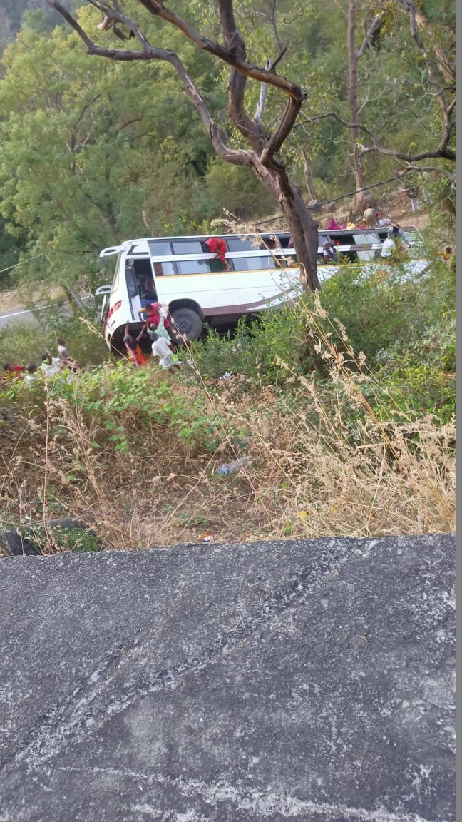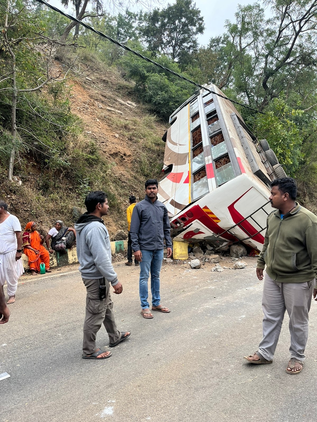 ಚಾಮರಾಜನಗರ | ಮಹದೇಶ್ವರ ಬೆಟ್ಟದಲ್ಲಿ ಬಸ್ ಪಲ್ಟಿ; 20 ಪ್ರವಾಸಿಗರಿಗೆ ಗಾಯ