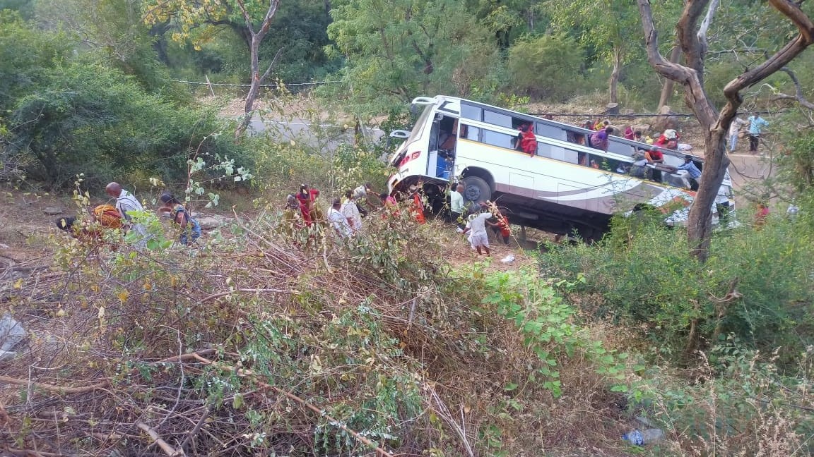 ಘಟನೆಯಲ್ಲಿ ಬಸ್ಸಿನಲ್ಲಿದ್ದ 50 ಪ್ರವಾಸಿಗರ ಪೈಕಿ ಸುಮಾರು 20 ಮಂದಿಗೆ ಗಾಯಗಳಾಗಿವೆ ಎಂದು ತಿಳಿದುಬಂದಿದೆ. ಪ್ರವಾಸಕ್ಕೆಂದು ಬಂದಿದ್ದ ಗುಜರಾತ್ ಮೂಲದ ಬಸ್ ಮಹದೇಶ್ವರ ಬೆಟ್ಟ ಪಾಲರ್ ನಡುವಿನ ಘಾಟ್ ನಲ್ಲಿ ಚಾಲಕನ ನಿಯಂತ್ರಣ ತಪ್ಪಿ ರಸ್ತೆ ಬದಿಗೆ ಉರುಳಿಬಿದ್ದಿದೆ. ಗಾಯಾಳುಗಳನ್ನು ಆಸ್ಪತ್ರೆ ಸಾಗಿಸಲಾಗಿದೆ.