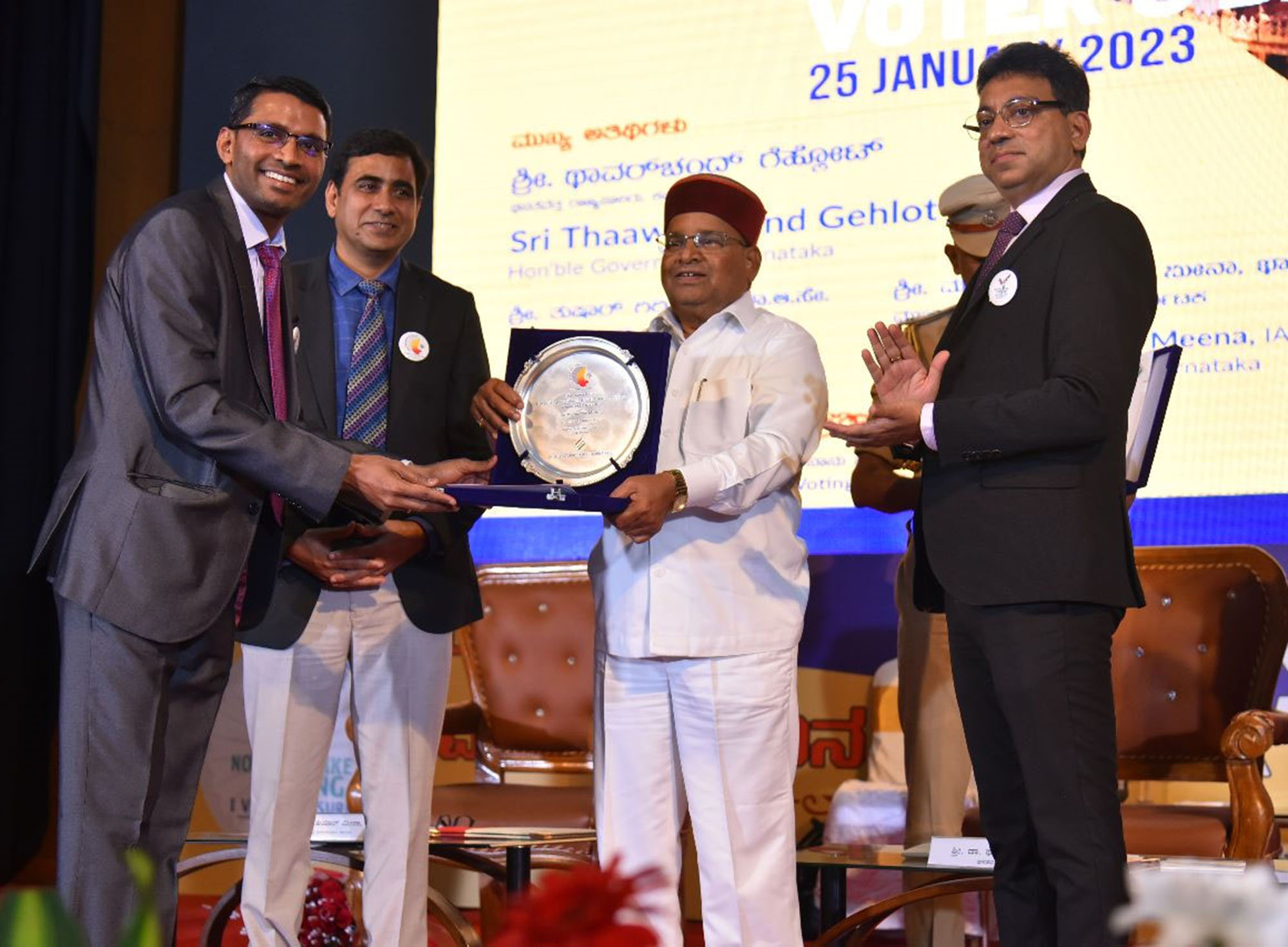 ಈ ಸಂದರ್ಭದಲ್ಲಿ ರಾಜ್ಯ ಮಟ್ಟದಲ್ಲಿ ವಿವಿಧ ವಿಭಾಗಗಳಲ್ಲಿ ಉತ್ತಮ ಸಾಧನೆ ಮಾಡಿದ ಅಧಿಕಾರಿ ಸಿಬ್ಬಂದಿಗಳನ್ನು ಆಯ್ಕೆ ಮಾಡಲಾಗಿದ್ದು, ಅದರಂತೆ ‘ಜಿಲ್ಲಾ ಚುನಾವಣಾಧಿಕಾರಿ’ ವಿಭಾಗದಲ್ಲಿ ಆಯ್ಕೆಯಾದ ಉಡುಪಿ ಜಿಲ್ಲಾಧಿಕಾರಿ ಕೂರ್ಮಾರಾವ್ ಎಂ ಅವರಿಗೆ ಕರ್ನಾಟಕ ರಾಜ್ಯದ ರಾಜ್ಯಪಾಲರು ಪ್ರಶಸ್ತಿ ನೀಡಿ ಗೌರವಿಸಿದರು.