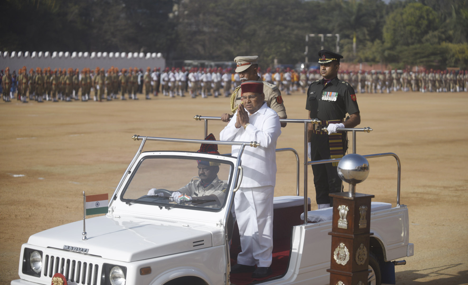 ಬೆಂಗಳೂರು, ಜ.26: ನಗರದ ಮಾಣಿಕ್ ಷಾ ಪರೇಡ್ ಮೈದಾನದಲ್ಲಿ 74ನೇ ಗಣರಾಜ್ಯೋತ್ಸವ ಹಿನ್ನೆಲೆ ರಾಜ್ಯಪಾಲ ಥಾವರ್ ಚಂದ್ ಗೆಹ್ಲೋಟ್ ತೆರೆದ ವಾಹನದಲ್ಲಿ ಪರೇಡ್ ಮೈದಾನದಲ್ಲಿ ಸಂಚರಿಸಿ ವಿವಿಧ ತುಕಡಿಗಳಿಂದ ಗೌರವ ವಂದನೆ ಸ್ವೀಕರಿಸಿದರು.