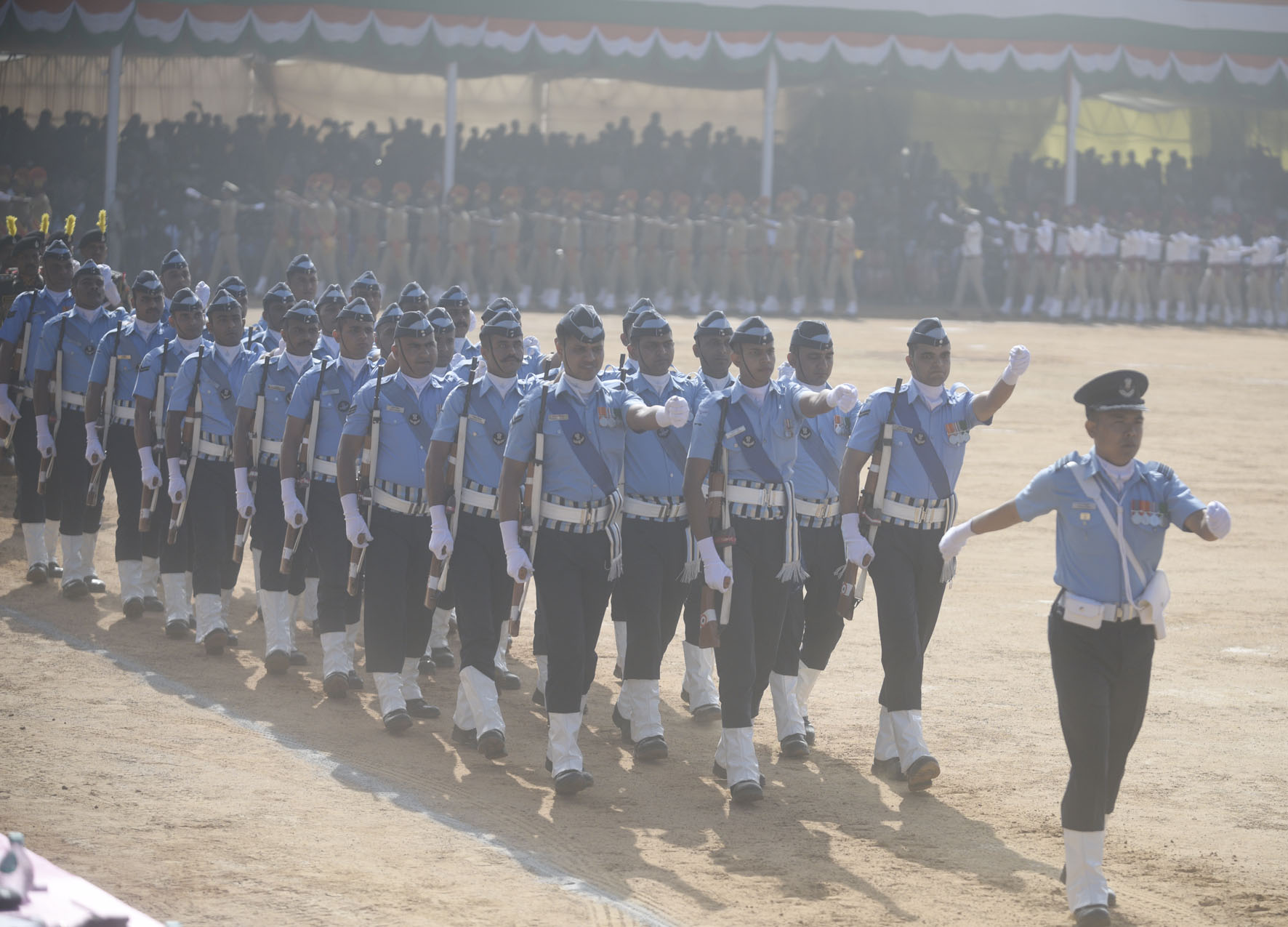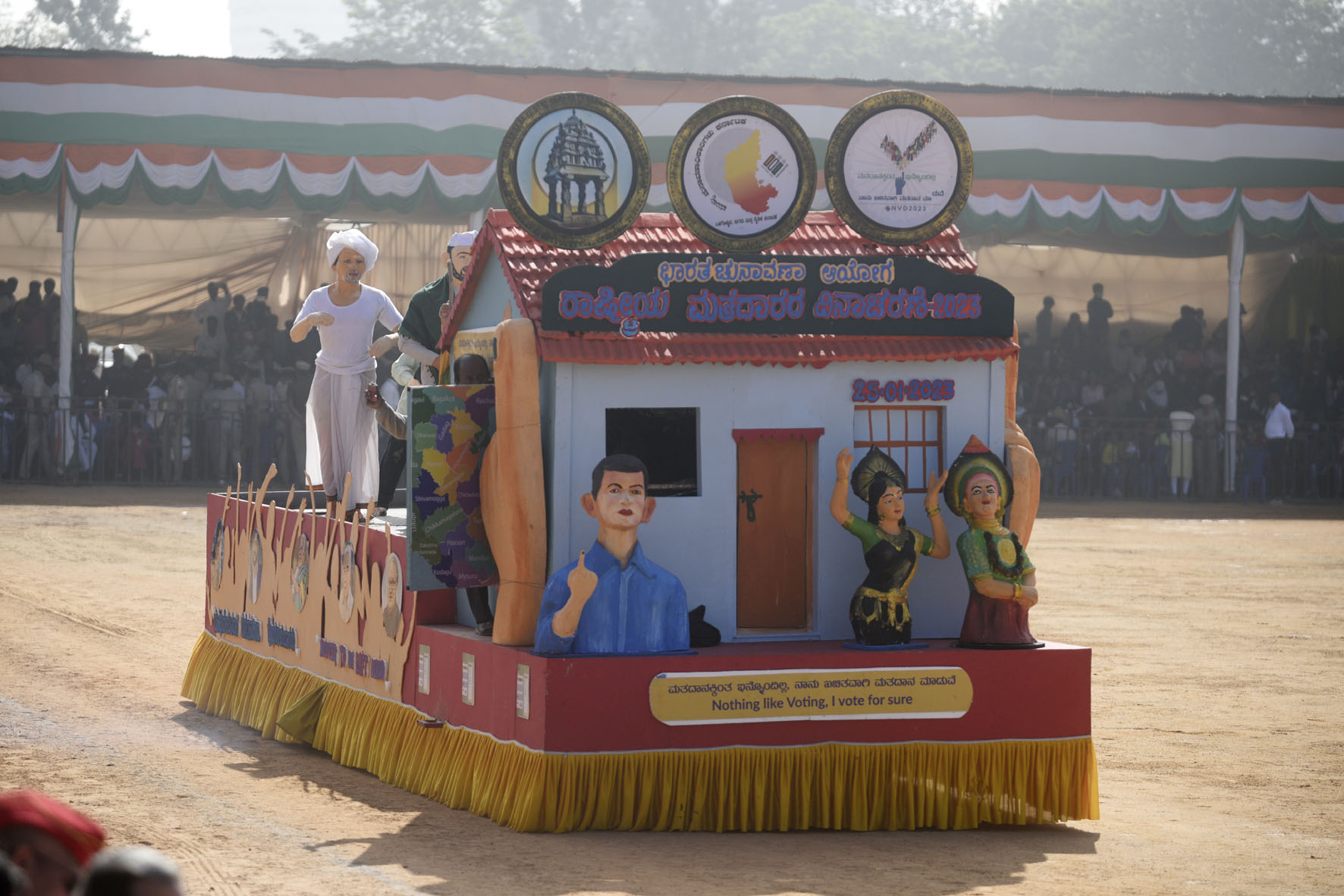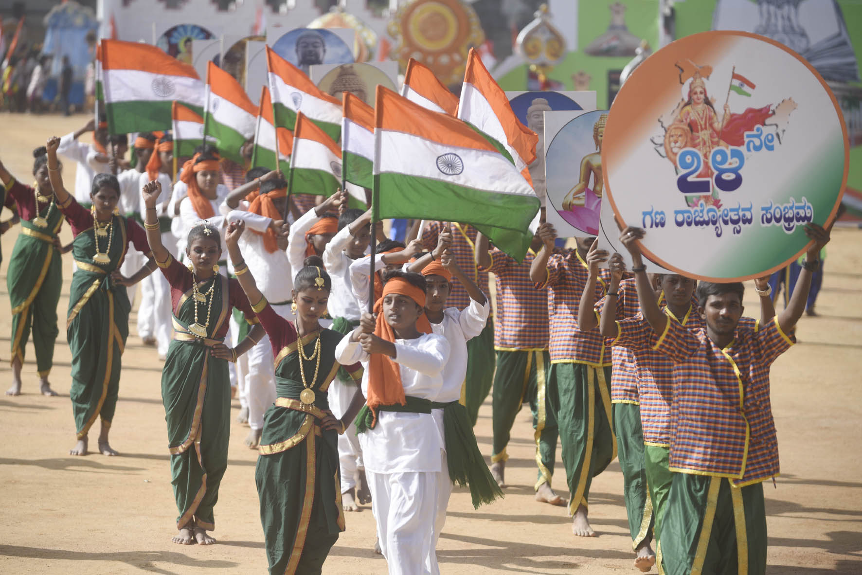 ಕಾರ್ಯಕ್ರಮದಲ್ಲಿ ವೈವಿಧ್ಯಮಯ ಪಥಸಂಚಲನ ಜರುಗಿತು. ವಿದ್ಯಾರ್ಥಿಗಳು ರಾಷ್ಟ್ರ ಪ್ರೇಮವನ್ನು ಪ್ರತಿಬಿಂಬಿಸುವ ಮನಮೋಹಕ ಸಾಂಸ್ಕೃತಿಕ ಕಾರ್ಯಕ್ರಮಗಳನ್ನು ಪ್ರದರ್ಶಿಸಿದರು. ಅವುಗಳಲ್ಲಿ ಮತದಾನದ ಬಗ್ಗೆ ಜಾಗೃತಿ ಮೂಡಿಸುವ ಟ್ಯಾಬ್ಲೋ ಹೆಚ್ಚಿನ ಗಮನ ಸೆಳೆಯಿತು. ಸೇನಾಪಡೆ, ಪೊಲೀಸ್ ಸಿಬ್ಬಂದಿಗಳು, ಅಗ್ನಿಶಾಮಕದಳ, ಎನ್ಸಿಸಿ ಸೇರಿದಂತೆ ವಿವಿಧ ಪಡೆಗಳಿಂದ ಪಥಸಂಚಲನ ನಡೆಯಿತು.