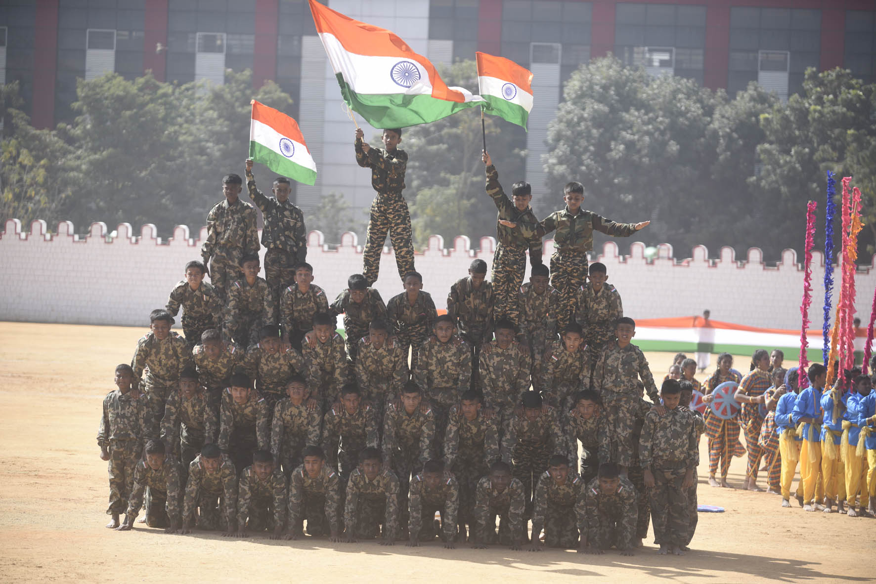 ಉತ್ತರಹಳ್ಳಿಯ ಕರ್ನಾಟಕ ಪಬ್ಲಿಕ್ ಶಾಲಾ ವಿದ್ಯಾರ್ಥಿಗಳು ಅಂಬೇಡ್ಕರ್ ಜೀವನ ಕುರಿತು ಸಾಂಸ್ಕೃತಿಕ ಕಾರ್ಯಕ್ರಮ ನೀಡಿದರು. ವಿಜಯನಗರದಲ್ಲಿರುವ ಬಿಬಿಎಂಪಿ ಪ್ರೌಢಶಾಲೆ ಮತ್ತು ಪಿಯು ಕಾಲೇಜಿನ ವಿದ್ಯಾರ್ಥಿಗಳಿಂದ ರೈತರಿಗೆ ನಮನ ಸಲ್ಲಿಸುವ ನಮ್ಮ ಭಾರತ ಭಾಗ್ಯವಿದಾತ ಕಾರ್ಯಕ್ರಮ ನಡೆಯಿತು. ಲಗ್ಗೆರೆಯ ಸಿರಿ ಸ್ಕೂಲ್ ಮತ್ತು ವಿಷ್ಣು ಸ್ಕೂಲ್ ವಿದ್ಯಾರ್ಥಿಗಳು ಭಾರತಾಂಬೆ ನಿನ್ನ ಜನ್ಮದಿನ ಎನ್ನುವ ನೃತ್ಯ ರೂಪಕ ಪ್ರಸ್ತುತಪಡಿಸಿದರು. ದಿ ಆರ್ಮಿ ಸರ್ವೀಸ್ ಕಾಪ್ರ್ಸ್ ವತಿಯಿಂದ ಎಎಸ್ಸಿ ದಿ ಟೋರ್ನಾಡಸ್ ತಂಡ ಮೋಟಾರ್ ಬೈಕ್ ಸಾಹಸ ಪ್ರದರ್ಶನ ಪ್ರದರ್ಶಿಸಿದರು. ಮೈ ನವಿರೇಳಿಸುವಂತಿದ್ದ ಬೈಕ್ ಸಾಹಸಕ್ಕೆ ನೋಡುಗರು ಮೂಕವಿಸ್ಮಿತರಾದರು. ಭಾಗವಹಿಸಿ ಎಲ್ಲ ತಂಡಗಳಿಗೆ ರಾಜ್ಯಪಾಲರು ಬಹುಮಾನ ವಿತರಿಸಿದರು.