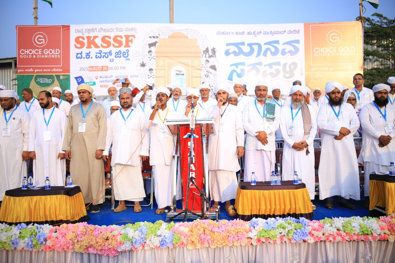 ‘ಮಾನವ ಸರಪಳಿ’ಯೊಂದಿಗೆ ಎಸ್ಕೆಎಸೆಸ್ಸೆಫ್ ಮಂಗಳೂರು ವಲಯ ಅಧ್ಯಕ್ಷ ಎ.ಕೆ.ಅಬ್ದುಲ್ ಖಾದರ್ ಕಣ್ಣೂರು ಪ್ರತಿಜ್ಞಾವಿಧಿ ಬೋಧಿಸಿದರು. ಅನ್ಸಾರುಲ್ ಹುದಾ ದರ್ಸ್ ವಿದ್ಯಾರ್ಥಿಗಳು ರಾಷ್ಟ್ರಗೀತೆ ಮತ್ತು ಐಕ್ಯತಾ ಗಾನ ಹಾಡಿದರು. ‘ಹರಕೆಯ ಫಲ’ ಮತ್ತು ‘ಕ್ಷಮೆಯ ಪ್ರತಿಫಲ’ ಎಂಬ ಎರಡು ಕೃತಿಗಳನ್ನು ಬಿಡುಗಡೆಗೊಳಿಸಲಾಯಿತು.