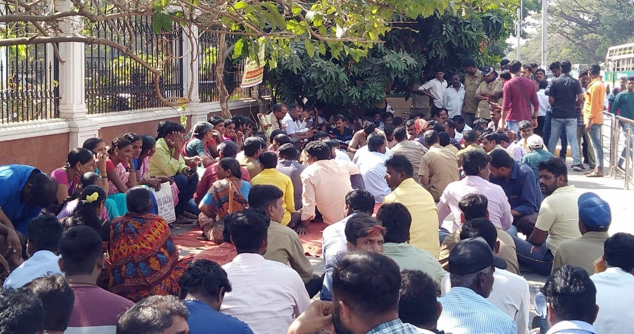 ಮಂಗಳೂರು, ಫೆ.1: ಶೀಘ್ರವೇ ನೇರ ಪಾವತಿ ಮತ್ತು ನೇರ ನೇಮಕಾತಿ ಸೇರಿದಂತೆ ವಿವಿಧ ಬೇಡಿಕೆಗಳ ಈಡೇರಿಕೆಗೆ ಆಗ್ರಹಿಸಿ ರಾಜ್ಯದ ವಿವಿಧ ನಗರ ಮತ್ತು ಸ್ಥಳೀಯಸಂಸ್ಥೆಗಳಲ್ಲಿ ಹೊರಗುತ್ತಿಗೆಯಲ್ಲಿ ದುಡಿಯುತ್ತಿರುವ ವಾಹನ ಚಾಲಕರು, ನೀರು ಸರಬರಾಜು ಕಾರ್ಮಿಕರು, ಡಾಟಾ ಎಂಟ್ರಿ ಆಪರೇಟರ್, ಒಳ ಚರಂಡಿ ಕಾರ್ಮಿಕರು ಅನಿರ್ದಿಷ್ಟಾವಧಿ ಮುಷ್ಕರ ಆರಂಭಿಸಿದ್ದಾರೆ.