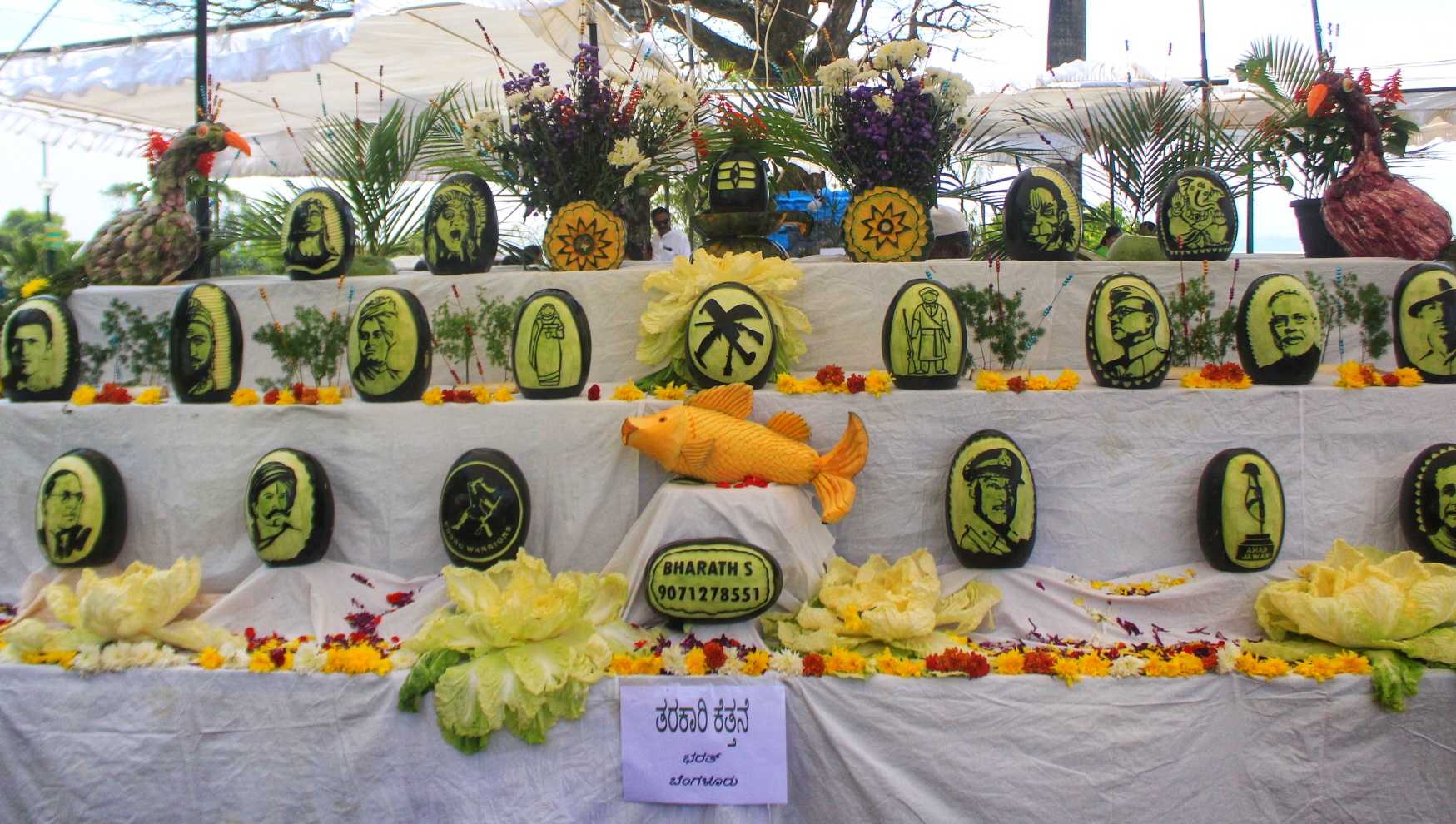 ಪ್ರಧಾನಮಂತ್ರಿ ನರೇಂದ್ರ ಮೋದಿ, ಸಂವಿಧಾನ ಶಿಲ್ಪಿ ಡಾ.ಬಿ.ಆರ್,ಅಂಬೇಡ್ಕರ್, ವೀರಸೇನಾನಿ ಜನರಲ್ ಕೆ.ಎಸ್.ತಿಮ್ಮಯ್ಯ, ಸ್ವಾತಂತ್ರ್ಯ ಹೋರಾಟಗಾರ ಸಂಗೊಳ್ಳಿ ರಾಯಣ್ಣ, ರಾಷ್ಟ್ರಕವಿ ಕುವೆಂಪು, ಸ್ವಾಮಿ ವಿವೇಕಾನಂದ, ನೇತಾಜಿ ಸುಭಾಷ್ ಚಂದ್ರಬೋಸ್, ಭಗತ್ಸಿಂಗ್, ಪುನಿತ್ ರಾಜ್ಕುಮಾರ್ ಸೇರಿದಂತೆ ವಿವಿಧ ಗಣ್ಯರ ಕಲಾಕೃತಿಯನ್ನು ತರಕಾರಿ/ ಹಣ್ಣುಗಳಲ್ಲಿ ಕೆತ್ತನೆ ಮಾಡಲಾಗಿದೆ. ವಿವಿಧ ಅಲಂಕಾರಿಕ ಗಿಡಗಳಾದ ಬೋನ್ಸ್ಯ್ ಗಿಡಗಳ ಪ್ರದರ್ಶನ, ಇಕೆಬಾನೆ ಹೂವಿನ ಜೋಡಣೆ ಹಾಗೂ ಅಂಥೋರಿಯಂ ಹೂವಿನ ಪ್ರದರ್ಶನ ಗಮನ ಸೆಳೆಯುತ್ತಿದೆ.