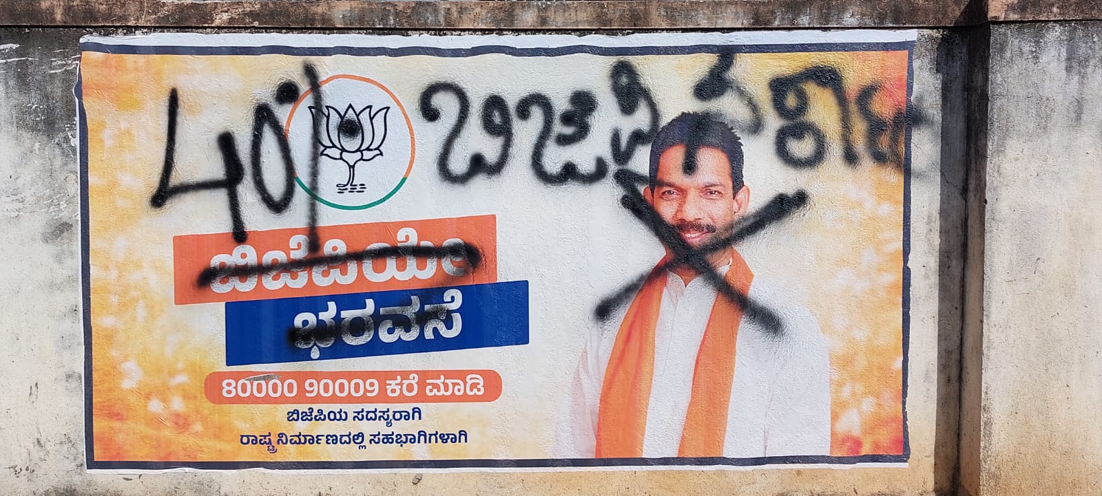 ರಾಜಾಜಿನಗರ ವಿಧಾನಸಭಾ ಕ್ಷೇತ್ರದಲ್ಲಿ ಬಿಜೆಪಿಯ ಭಿತ್ತಿ ಪತ್ರಗಳ ಮೇಲೆ ಬಿಜೆಪಿಯ ಶೇ.40 ಕಮಿಷನ್ ವಿಷಯ ಬರೆಯುವದರ ಮೂಲಕ ಬಿಜೆಪಿಯ ದುರಾಡಳಿತವನ್ನು ಖಂಡಿಸುತ್ತಿದ್ದೇವೆ ಎಂದು ಅವರು ಹೇಳಿದರು.