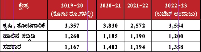 ಇದೇ ವೇಳೆ ಕೃಷಿ ಮತ್ತು ಹೈನುಗಾರಿಕೆ ಮತ್ತು ಸಹಕಾರ ಕ್ಷೇತ್ರಗಳಿಗೆ ನೀಡುತ್ತಿದ್ದ ಸಬ್ಸಿಡಿಯನ್ನು ಗಣನೀಯವಾಗಿ ಇಳಿಸಿದೆ.