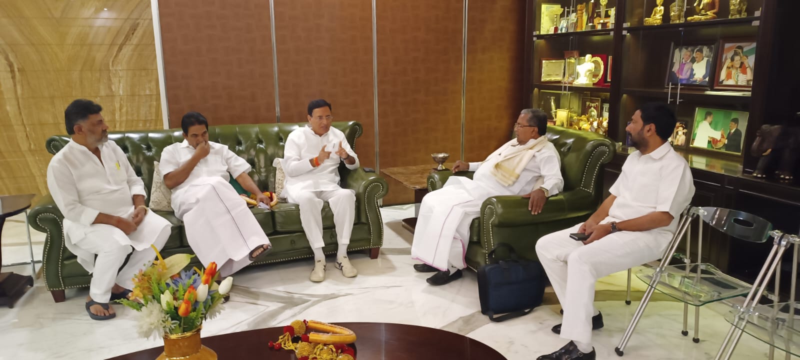 ಕೆಪಿಸಿಸಿ ಅಧ್ಯಕ್ಷ ಡಿ.ಕೆ.ಶಿವಕುಮಾರ್, ಕಾಂಗ್ರೆಸ್ ಉಸ್ತುವಾರಿ ರಣದೀಪ್ ಸಿಂಗ್ ಸುರ್ಜೇವಾಲಾ, ಎಐಸಿಸಿ ಪ್ರಧಾನ ಕಾರ್ಯದರ್ಶಿ ಕೆ.ಸಿ. ವೇಣುಗೋಪಾಲ್, ಕೆಪಿಸಿಸಿ ಕಾರ್ಯಾಧ್ಯಕ್ಷ ಸಲೀಂ ಅಹ್ಮದ್ ಜಂಟಿ ಸುದ್ದಿಗೋಷ್ಟಿಯಲ್ಲಿ ಪಾಲ್ಗೊಂಡಿದ್ದರು.