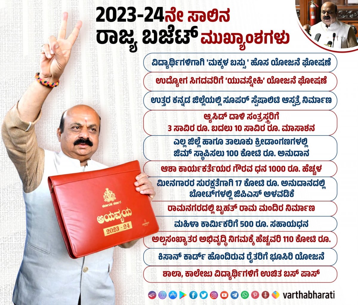 ದೂರದೃಷ್ಟಿ ಮುಂಗಡ ಪತ್ರ: ‘ಬಡವರು, ರೈತರು ಹಾಗೂ ಮಹಿಳೆಯರು ಸೇರಿ ಎಲ್ಲ ವರ್ಗದ ಜನರ ಹಿತಕಾಯುವ ಜನಪರ, ಜನಸ್ನೇಹಿ ಆಯವ್ಯಯ. ಸಾಮಾಜಿಕ ನ್ಯಾಯ ಒದಗಿಸುವ ಬಿಜೆಪಿ ಬದ್ದತೆ, ಅರ್ಥವ್ಯವಸ್ಥೆ ಅಭಿವೃದ್ಧಿ ಪಥದಲ್ಲಿ ಕೊಂಡೊಯ್ಯುವ ಪ್ರಗತಿಪರ ಬಜೆಟ್ ಇದು. ನೀರಾವರಿ ವಲಯಕ್ಕೆ 25ಸಾವಿರ ಕೋಟಿ ರೂ.ಅನುದಾನ ನೀಡುವ ಮೂಲಕ 1.50ಲಕ್ಷ ಹೆಕ್ಟೇರ್ ನೀರಾವರಿ ಸಾಮಥ್ರ್ಯ ಹೆಚ್ಚಿಸಲಾಗುವುದು. ಉದ್ಯೋಗ ಸೃಷ್ಟಿ, ಜನರ ಬದುಕಿನಲ್ಲಿ ಗುಣಾತ್ಮಕವಾದ ಬದಲಾವಣೆ ಮತ್ತು ಸಮಗ್ರ ಅಭಿವೃದ್ಧಿ ಚಿಂತನೆಗಳನ್ನು ಪರಿಣಾಮಕಾರಿಯಾಗಿ ವಿನ್ಯಾಸಗೊಳಿಸಿರುವ 2023-24ನೆ ಸಾಲಿನ ದೂರದೃಷ್ಟಿ ಮುಂಗಡ ಪತ್ರ ಇದು’