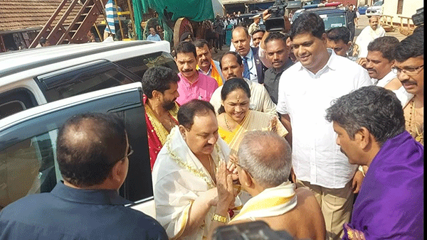 ಮಠಕ್ಕೆ ಆಗಮಿಸಿದ ನಡ್ದಾರನ್ನು ಮಠದ ದಿವಾನ ವರದರಾಜ ಆಚಾರ್ಯ ಮಾಲಾರ್ಪಣೆಗೈದು ಸ್ವಾಗತಿಸಿದರು.