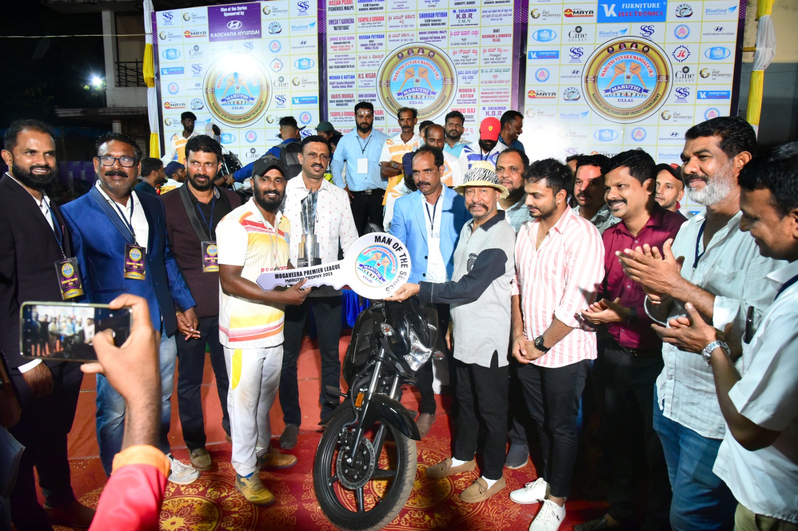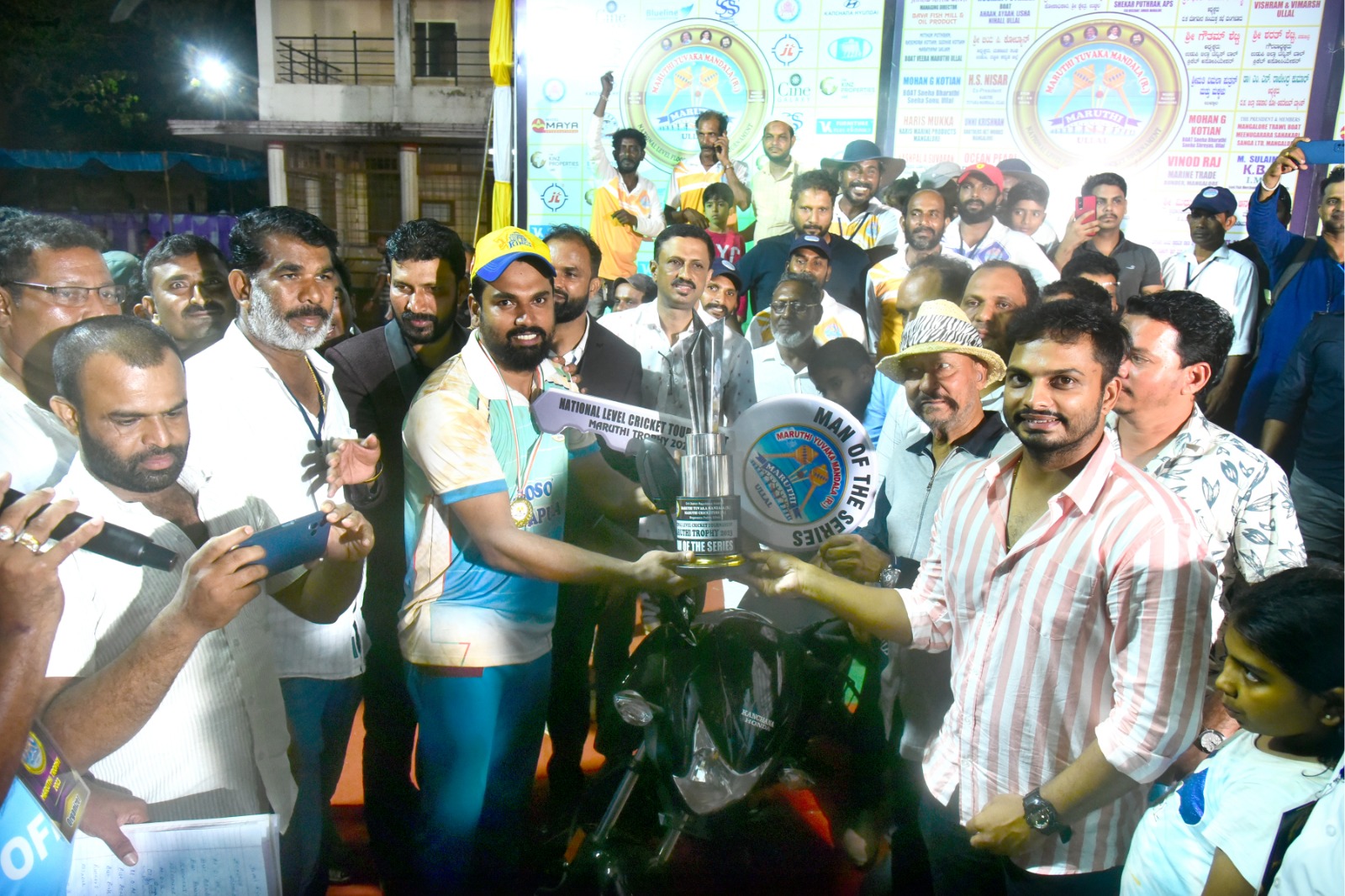 ಮಂಗಳೂರು: ದ.ಕ ಜಿಲ್ಲಾ ರಾಜ್ಯೋತ್ಸವ ಪುರಸ್ಕೃತ ಸಮಾಜ ಸೇವಾ ನಿರತ ಸಂಸ್ಥೆ ಮಾರುತಿ ಯುವಕ ಮಂಡಲ(ರಿ) ಮತ್ತು ಮಾರುತಿ ಕ್ರಿಕೆಟರ್ಸ್(ರಿ) ಮೊಗವೀರ ಪಟ್ಣ ಉಳ್ಳಾಲ ಇವುಗಳ ಸಂಯುಕ್ತ ಆಶ್ರಯದಲ್ಲಿ ವಾರ್ಷಿಕೋತ್ಸವ ಪ್ರಯುಕ್ತ ಆಯೋಜಿಸಲಾದ ಅಖಿಲ ಭಾರತ ಮಟ್ಟದ ಹೊನಲು ಬೆಳಕಿನ ಮಾರುತಿ ಟ್ರೋಫಿ-2023 ಕ್ರಿಕೆಟ್ ಟೂರ್ನಮೆಂಟ್ನಲ್ಲಿ ಪ್ರಶಸ್ತಿ ಪ್ರಕೃತಿ ನ್ಯಾಶ್ ಬೆಂಗಳೂರು ತಂಡ ಚಾಂಪಿಯನ್ ಆಗಿ ಹೊರಹೊಮ್ಮಿದೆ.