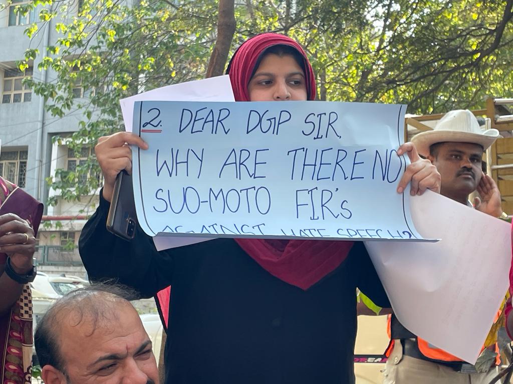 ಮಂಗಳವಾರ ಕೆಲವು ಸಂಘಟನೆಗಳು, ವಕೀಲರು ಮತ್ತು ವಿದ್ಯಾರ್ಥಿಗಳು ಡಿಜಿಪಿ ಕಚೇರಿ ಬಳಿ ಜಮಾಯಿಸಿ ಡಿಜಿಪಿಯವರಿಗೆ ಪ್ರಶ್ನಾವಳಿಯ ಮನವಿ ಪತ್ರವನ್ನು ಸಲ್ಲಿಸಿದ ಬಳಿಕ ಮಾತನಾಡಿದ ಅವರು, ರಾಜ್ಯದ ನಾಗರಿಕರನ್ನು ರಕ್ಷಿಸುವುದು ಪೊಲೀಸರ ಕರ್ತವ್ಯವಾಗಿದ್ದು, ದ್ವೇಷದ ಭಾಷಣಕಾರರ ವಿರುದ್ಧ ಇಲಾಖೆ ಏಕೆ ಇದುವರೆಗೂ ಯಾವುದೇ ಸುಮೋಟೋ ಎಫ್ಐಆರ್ಗಳನ್ನು ದಾಖಲಿಸಿಲ್ಲ. ಜನರಲ್ಲಿ ಭದ್ರತೆಯ ಭಾವನೆಯನ್ನು ಸೃಷ್ಟಿಸುವ ಮತ್ತು ನಿರ್ವಹಿಸುವುದು ಪೊಲೀಸರ ಕೆಲಸವಾಗಬೇಕು ಎಂದರು.