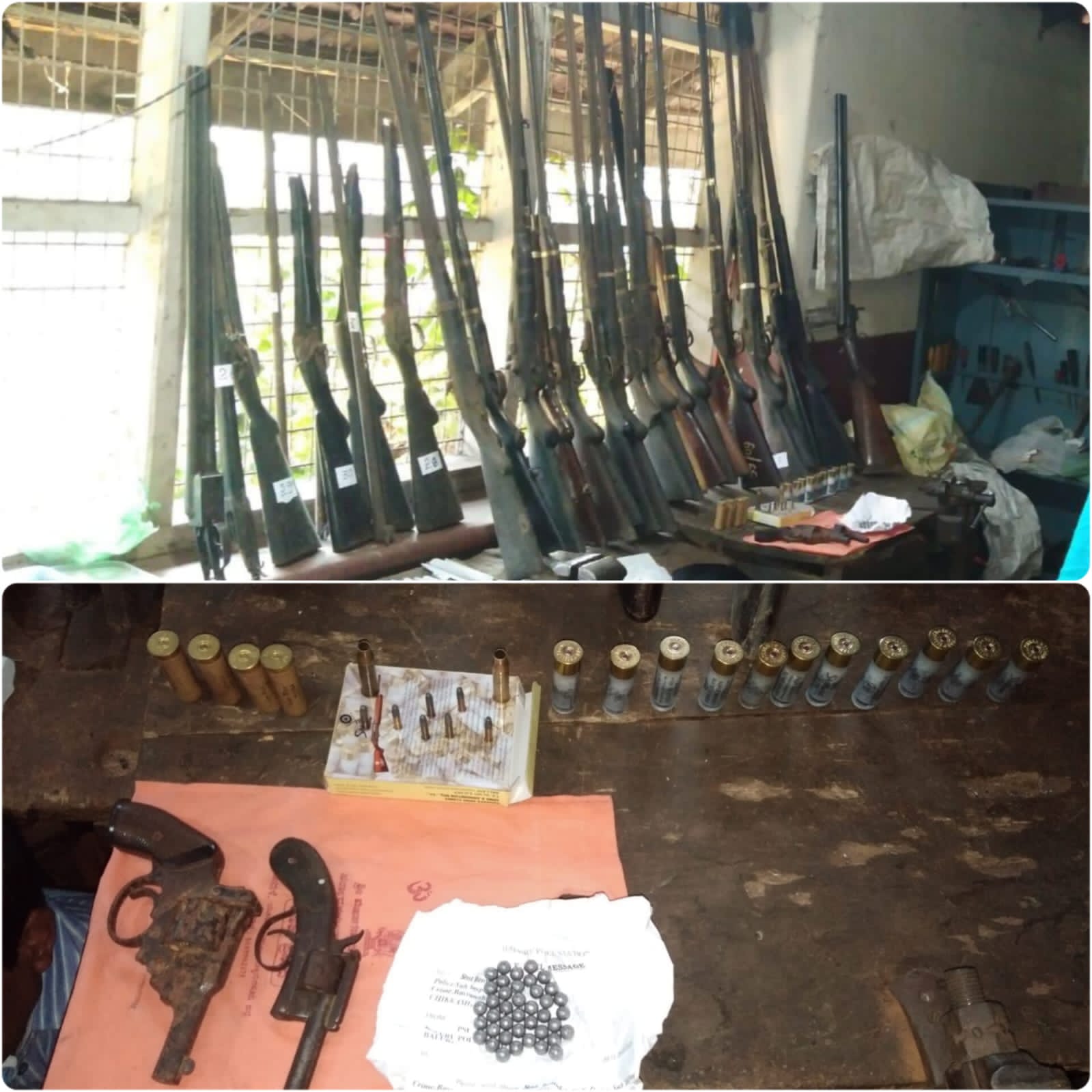 47 ಬಂದೂಕು, 2 ರಿವಾಲ್ವರ್, 22 ರೈಫಲ್ ಗುಂಡುಗಳನ್ನು ವಶಕ್ಕೆ ಪಡೆದ ಪೊಲೀಸರು