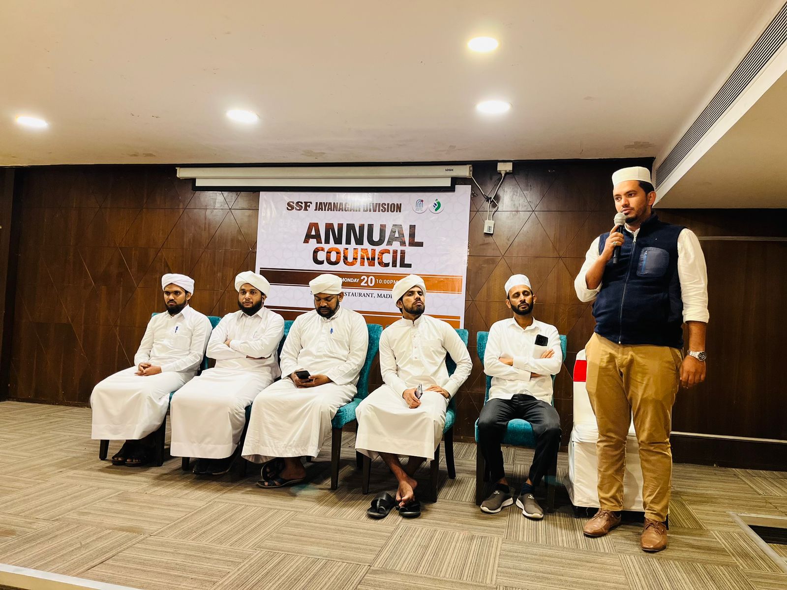 ಬೆಂಗಳೂರು: ಕರ್ನಾಟಕ ರಾಜ್ಯ ಸುನ್ನಿ ಸ್ಟೂಡೆಂಟ್ಸ್ ಫೆಡರೇಶನ್ ಎಸ್ಸೆಸ್ಸೆಫ್ ಜಯನಗರ ಡಿವಿಷನ್ ಇದರ ವಾರ್ಷೀಕ ಮಹಾಸಭೆಯು ಖಾಸಗಿ ಹೋಟೆಲ್ ಮಡಿವಾಳದಲ್ಲಿ ಡಿವಿಷನ್ ಅಧ್ಯಕ್ಷ ಅಬ್ದುಲ್ ಅಝೀಝ್ ಉಮೈದಿ ಅಧ್ಯಕ್ಷತೆಯಲ್ಲಿ ಜರಗಿತು.