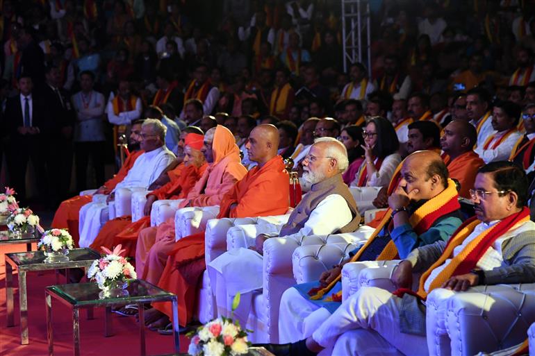 ಈ ವೇಳೆ ಪ್ರಧಾನಿ ಮೋದಿ, ಆದಿಚುಂಚನಗಿರಿ ಮಠದ ನಿರ್ಮಲಾನಂದ ಸ್ವಾಮಿ, ಸುತ್ತೂರು ಮಠದ ಶಿವರಾತ್ರಿ ದೇಶಿಕೇಂದ್ರ ಸ್ವಾಮಿ, ಉಡುಪಿಯ ವಿಶ್ವೇಶ್ವರ ಪ್ರಸನ್ನ ತೀರ್ಥ ಸ್ವಾಮಿ, ಧರ್ಮಸ್ಥಳದ ಧರ್ಮಾಧಿಕಾರಿ ಡಾ.ವಿರೇಂದ್ರ ಹೆಗೆಡೆ, ನಂಜಾವದೂತ ಸ್ವಾಮಿ ಹಾಗೂ ಕೇಂದ್ರ ಸಚಿವ ಪ್ರಹ್ಲಾದ ಜೋಶಿ, ಸಚಿವ ಸುನಿಲ್ ಕುಮಾರ್ ಸೇರಿದಂತೆ ಇನ್ನಿತರರು ಉಪಸ್ಥಿತರಿದ್ದರು.