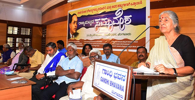 ರವಿವಾರ ನಗರದ ಗಾಂಧಿ ಭವನದಲ್ಲಿ ದಲಿತ ಹಕ್ಕುಗಳ ಸಮಿತಿ ವತಿಯಿಂದ ಆಯೋಜಿಸಿದ್ದ ‘ದಲಿತರ ಮೇಲಿನ ದೌರ್ಜನ್ಯಗಳನ್ನು ವಿರೋಧಿಸಿ ಮತ್ತು ಅವರ ಹಕ್ಕುಗಳಿಗಾಗಿ ಒತ್ತಾಯಿಸಿ’ ಎಂಬ ರಾಜ್ಯಮಟ್ಟದ ಸಮಾವೇಶದಲ್ಲಿ ಮಾತನಾಡಿದ ಅವರು, ರಾಜ್ಯದಲ್ಲಿರುವ ಬಿಜೆಪಿ ಸರಕಾರವು ದಲಿತ ಹಾಗೂ ಅಲ್ಪಸಂಖ್ಯಾತ ಸಮುದಾಯಗಳ ಮತಗಳನ್ನು ರದ್ದುಪಡಿಸುವಂತಹ ಅಪಾಯಕಾರಿ ಕೃತ್ಯಕ್ಕೆ ಕೈ ಹಾಕಿದೆ. ಈ ಮೂಲಕ ಬಿಜೆಪಿ ಸಂವಿಧಾನಗಳ ಮೌಲ್ಯಗಳನ್ನು ಸಂಪೂರ್ಣವಾಗಿ ಗಾಳಿಗೆ ತೂರಿ ದಲಿತ, ಮುಸ್ಲಿಮ್ ಹಾಗೂ ಶೋಷಿತರಿಗೆ ಆಮಿಷ, ದೌರ್ಜನ್ಯ, ಹಲ್ಲೆಗಳನ್ನು ನಡೆಸಿ ರಾಜಕಾರಣ ಮಾಡುತ್ತಿದೆ ಎಂದು ಆರೋಪಿಸಿದರು.