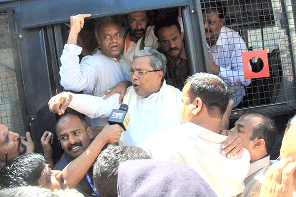 ಸಿಎಂ ನಿವಾಸಕ್ಕೆ ಮುತ್ತಿಗೆ ಯತ್ನ: ಸಿದ್ದರಾಮಯ್ಯ ಸಹಿತ ಕಾಂಗ್ರೆಸ್ ಮುಖಂಡರು ಪೊಲೀಸ್ ವಶಕ್ಕೆ