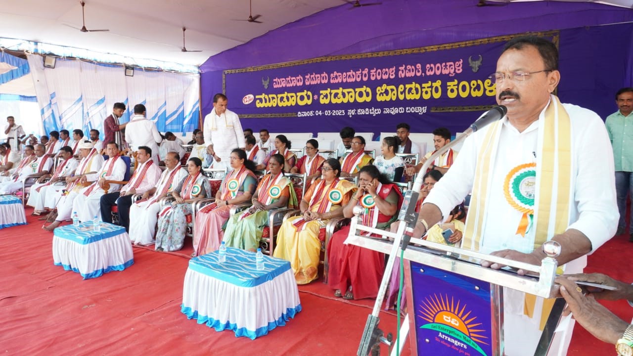 ರಮಾನಾಥ ರೈ ನೇತೃತ್ವದಲ್ಲಿ ಕೆಪಿಸಿಸಿ ಸದಸ್ಯ ಪಿಯೂಸ್ ಎಲ್. ರೋಡ್ರಿಗಸ್ ಅಧ್ಯಕ್ಷತೆಯ ಕಂಬಳ ಸಮಿತಿಯ ಆಶ್ರಯದಲ್ಲಿ ಬಂಟ್ವಾಳ ಸಮೀಪದ ನಾವೂರು ಗ್ರಾಮದ ಕೂಡಿಬೈಲಿನಲ್ಲಿ 12ನೇ ವರ್ಷದ ಮೂಡೂರು-ಪಡೂರು ‘ಬಂಟ್ವಾಳ ಕಂಬಳಕ್ಕೆ ಶನಿವಾರ ಚಾಲನೆ ನೀಡಿ ಬಳಿಕ ಸಭಾ ಕಾರ್ಯಕ್ರಮದ ಅಧ್ಯಕ್ಷತೆ ವಹಿಸಿ ಅವರು ಮಾತನಾಡಿದರು.