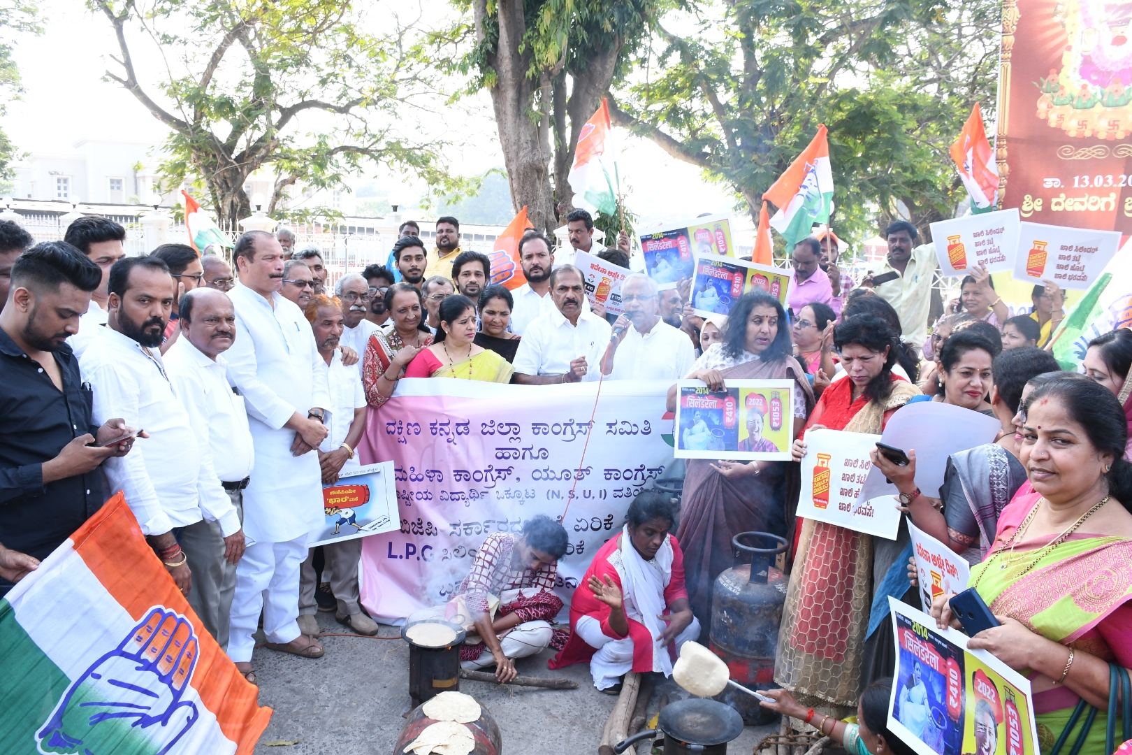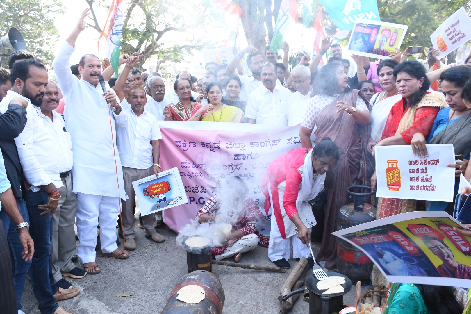 ಈ ಸಂದರ್ಭ ಪಕ್ಷದ ಕಾರ್ಯಕರ್ತೆಯರು ಸ್ಟೌವ್-ಕಟ್ಟಿಗೆ ಬಳಸಿ ಚಪಾತಿ ತಯಾರಿಸಿ ಬಿಜೆಪಿ ಸರಕಾರಕ್ಕೆ ಧಿಕ್ಕಾರ ಕೂಗಿದರು. ಪ್ರಧಾನಿ ನರೇಂದ್ರ ಮೋದಿ ಮತ್ತು ಮುಖ್ಯಮಂತ್ರಿ ಬಸವರಾಜ ಬೊಮ್ಮಾಯಿಗೆ ಚಪಾತಿ ಮತ್ತು ಗೃಹ ಸಚಿವ ಅಮಿತ್ ಶಾಗೆ ಕಟ್ಟಿಗೆಯನ್ನು ಕಳುಹಿಸಿಕೊಡುವ ಕಾಲ ಬಂದಿದೆ ಎಂದು ವ್ಯಂಗ್ಯವಾಡಿದರು.