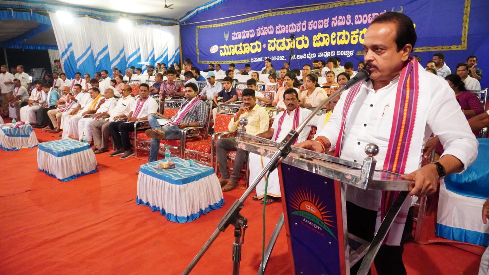 ರಮಾನಾಥ ರೈ ನೇತೃತ್ವದಲ್ಲಿ ಕೆಪಿಸಿಸಿ ಸದಸ್ಯ ಪಿಯೂಸ್ ಎಲ್ ರೋಡ್ರಿಗಸ್ ಅವರ ಅಧ್ಯಕ್ಷತೆಯ ಕಂಬಳ ಸಮಿತಿಯ ಆಶ್ರಯದಲ್ಲಿ ಬಂಟ್ವಾಳ ಸಮೀಪದ ನಾವೂರು ಗ್ರಾಮದ ಕೂಡಿಬೈಲಿನಲ್ಲಿ 12ನೇ ವರ್ಷದ ಮೂಡೂರು-ಪಡೂರು ‘ಬಂಟ್ವಾಳ ಕಂಬಳ’ದ ಸಭಾ ಕಾರ್ಯಕ್ರಮದಲ್ಲಿ ಮಾತನಾಡಿದ ಅವರು, ಸಮಾಜದಲ್ಲಿ ಎಲ್ಲವನ್ನೂ ವಿಭಾಗಿಸಿ ನೋಡುವ ಇಂದಿನ ದಿನಗಳಲ್ಲಿ ಕಂಬಳ, ಗಣೇಶೋತ್ಸವ ಗಳನ್ನು ಆಯೋಜಿಸಿ ಧಾರ್ಮಿಕ, ಸಾಂಸ್ಕೃತಿಕ ಕಾರ್ಯಕ್ರಮಗಳಲ್ಲಿ ಸರ್ವರ ಒಗ್ಗೂಡಿಕೆ ಮರಳಿ ಬಂದು ಹಿಂದಿನ ಸಂಭ್ರಮ-ಸಡಗರ ಉಂಟು ಮಾಡುವಲ್ಲಿ ಶಕ್ತಿ ಮೀರಿ ಪ್ರಯತ್ನಿಸಲಾಗಿದೆ ಎಂದರು.