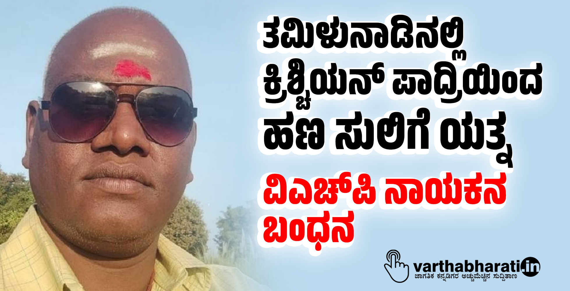 ತಮಿಳುನಾಡಿನಲ್ಲಿ ಕ್ರಿಶ್ಚಿಯನ್ ಪಾದ್ರಿಯಿಂದ ಹಣ ಸುಲಿಗೆ ಯತ್ನ: ವಿಎಚ್‌ಪಿ ನಾಯಕನ ಬಂಧನ