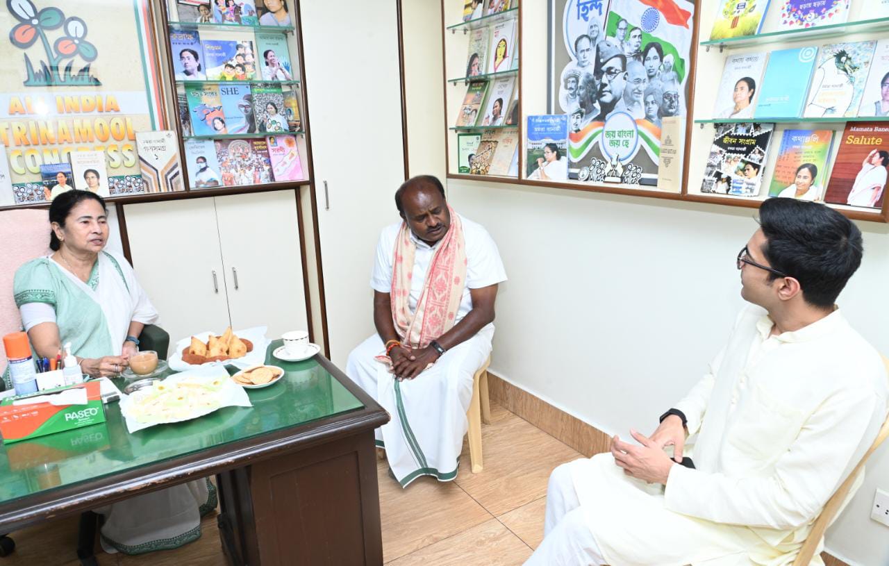'ರಾಜ್ಯ ವಿಧಾನಸಭೆ ಚುನಾವಣೆಯಲ್ಲಿ ಜೆಡಿಎಸ್ ಪಕ್ಷದ ಪರವಾಗಿ ಪ್ರಚಾರಕ್ಕೆ ಆಗಮಿಸುವುದಾಗಿ ಮಮತಾ ಬ್ಯಾನರ್ಜಿ ಅವರು ಹೇಳಿದರಲ್ಲದೆ, ರಾಷ್ಟ್ರ ರಾಜಕಾರಣದಲ್ಲಿ ಅಖಿಲ ಭಾರತ ತೃಣಮೂಲ ಕಾಂಗ್ರೆಸ್ ಮತ್ತು ಜಾತ್ಯತೀತ ಜನತಾದಳ ಪಕ್ಷಗಳು ಒಟ್ಟಾಗಿ ಕೆಲಸ ಮಾಡುವ ಬಗ್ಗೆಯೂ ಚರ್ಚಿಸಿದರು' ಎಂದು ಕುಮಾರಸ್ವಾಮಿ ಅವರು ಪ್ರಕಟಿಸಿದ್ದಾರೆ.