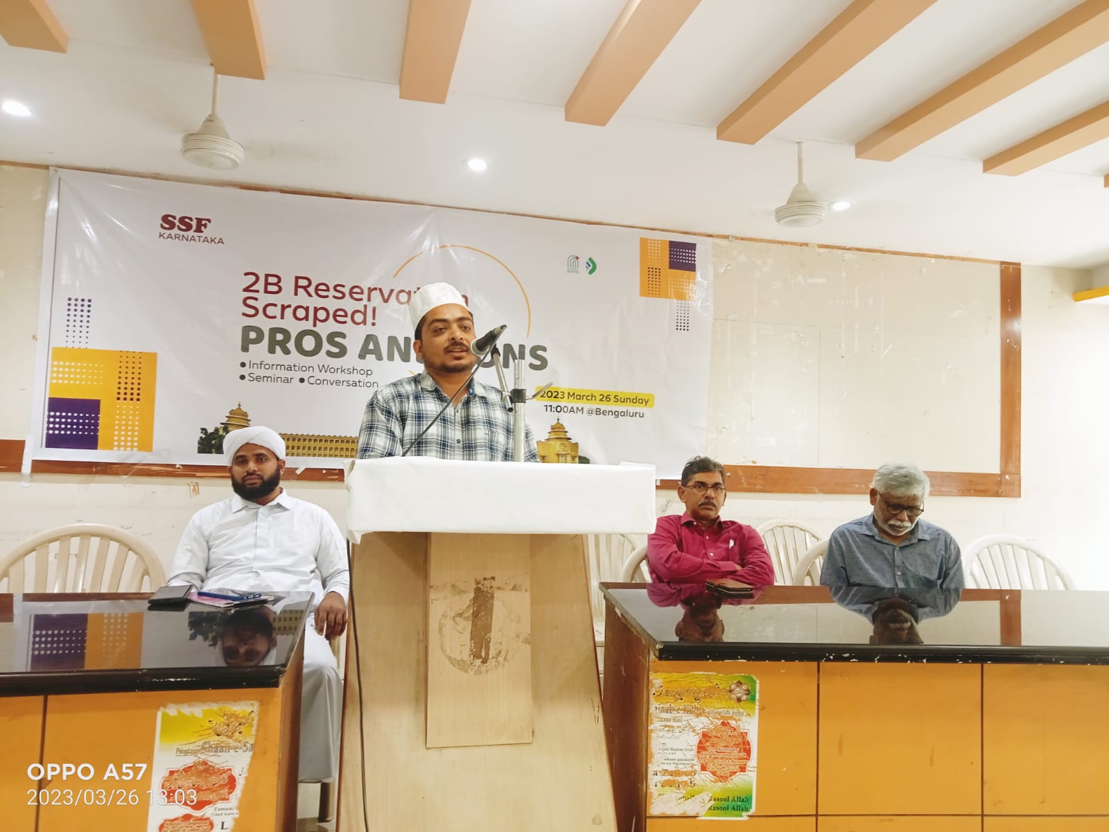 ಬೆಂಗಳೂರಿನಲ್ಲಿ ಎಸ್ಸೆಸ್ಸೆಫ್ ವತಿಯಿಂದ '2ಬಿ ಮೀಸಲಾತಿ ರದ್ದು' ಮಾಹಿತಿ ಕಾರ್ಯಾಗಾರ