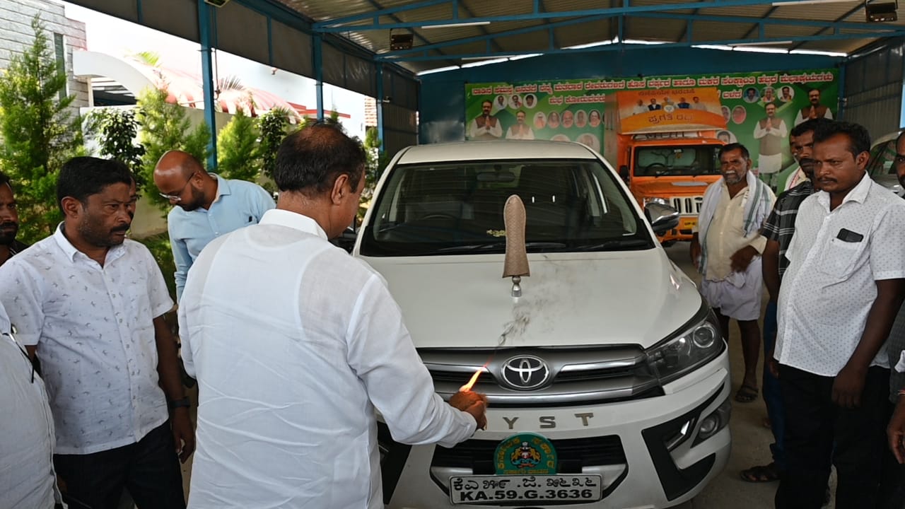 ಸರಕಾರಕ್ಕೆ ಹಿಂತಿರುಗಿಸುವ ಮುನ್ನ ತಮ್ಮನ್ನು ಹೊತ್ತು ಸಂಚರಿಸಿದ್ದ ಸರಕಾರಿ ಕಾರಿಗೆ ಸಚಿವ ಡಾ.ನಾರಾಯಣಗೌಡ ಅವರು ವಿಶೇಷ ಪೂಜೆ ಸಲ್ಲಿಸಿದರು.