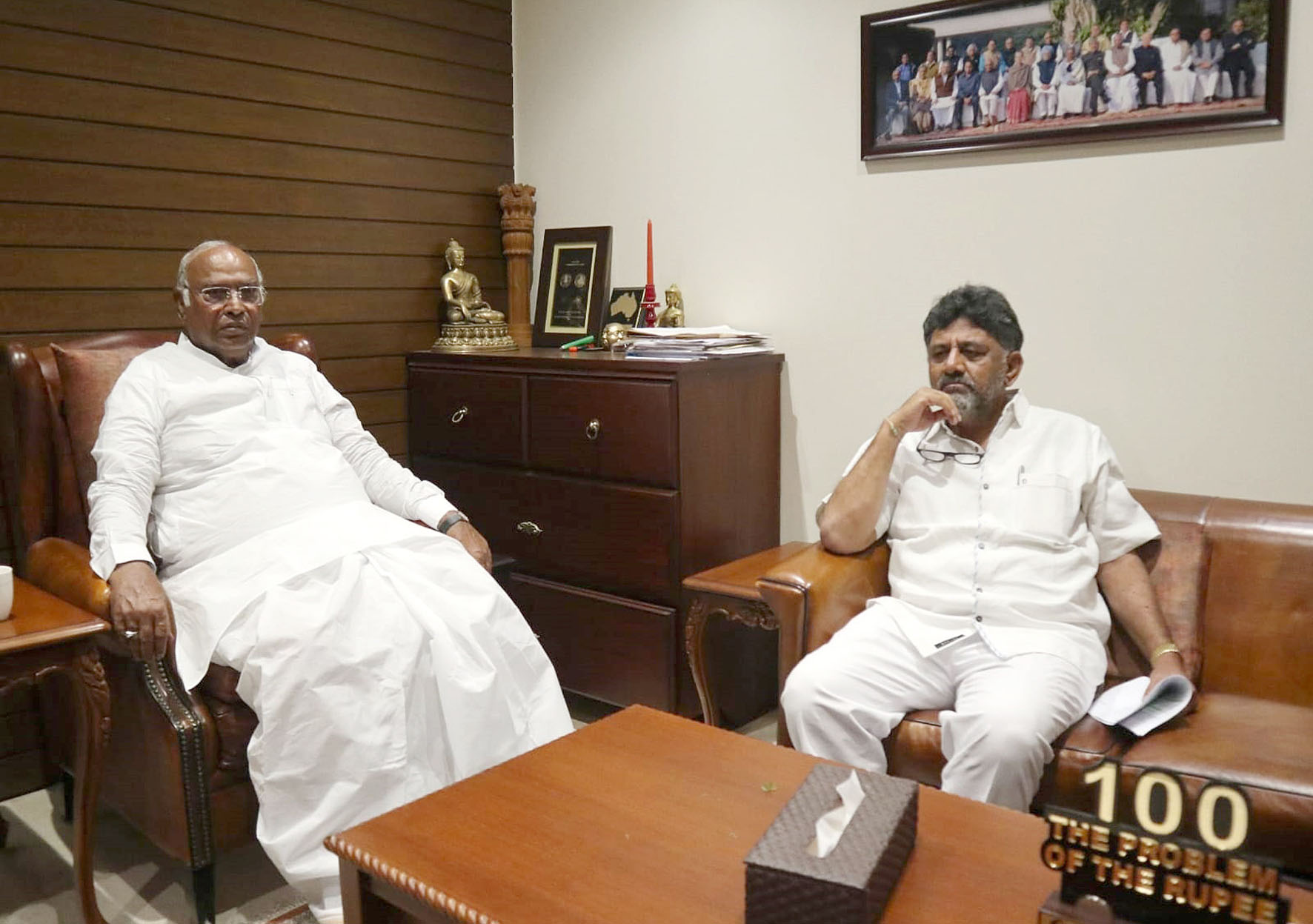 ಶನಿವಾರ ಡಿ.ಕೆ.ಶಿವಕುಮಾರ್, ಬೆಂಗಳೂರಿನ ಸದಾಶಿವನಗರದಲ್ಲಿನ ಮಲ್ಲಿಕಾರ್ಜುನ ಖರ್ಗೆ ಅವರ ನಿವಾಸಕ್ಕೇ ಖುದ್ದು ಭೇಟಿ ಮಾಡಿ ಚರ್ಚೆ ನಡೆಸಿದರು. ಆದರೆ ಅಧಿಕೃತವಾಗಿ ಯಾವ ವಿಚಾರದ ಬಗ್ಗೆ ಚರ್ಚೆ ನಡೆಸಿದ್ದಾರೆಂದು ಸದ್ಯಕ್ಕೆ ತಿಳಿದು ಬಂದಿಲ್ಲ.